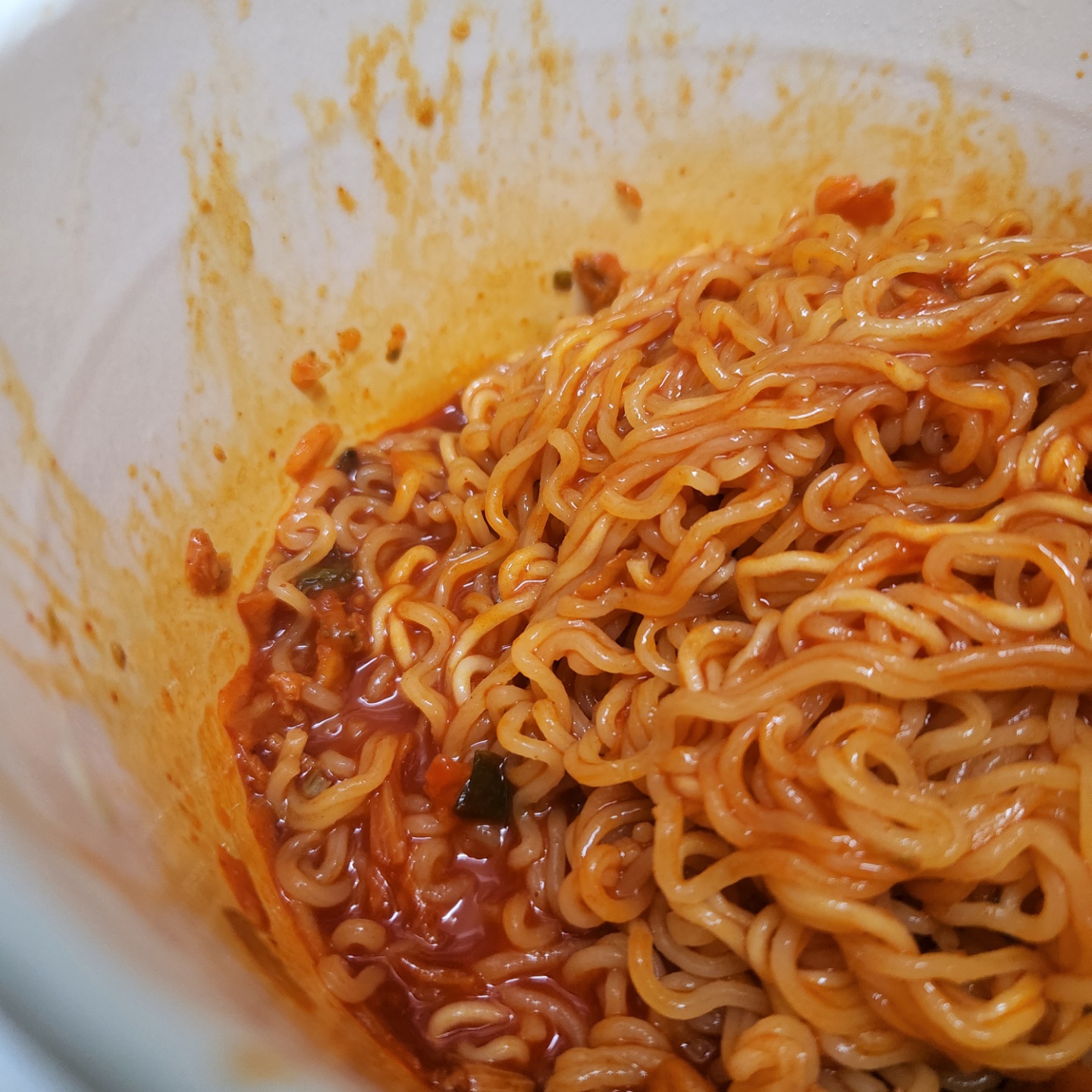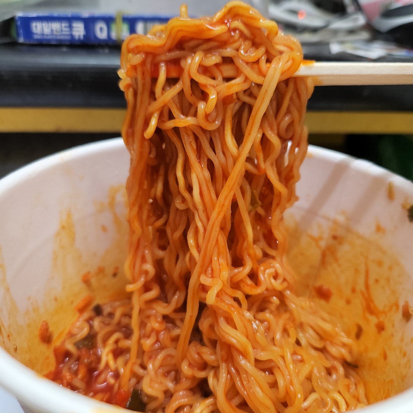 전반적으로 처음 접해보는 맛인데 비슷한 걸 찾아보면 김치사발면과 라면볶이 섞은 느낌? 생각이 드네요