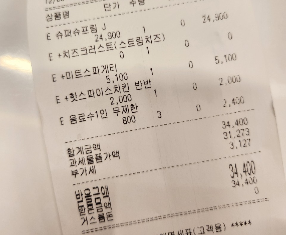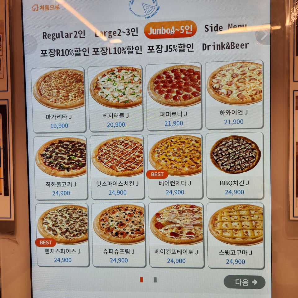 점보사이즈라 그런지 토핑과 치즈의 양이 조금 부족하다는 느낌을 받았으나