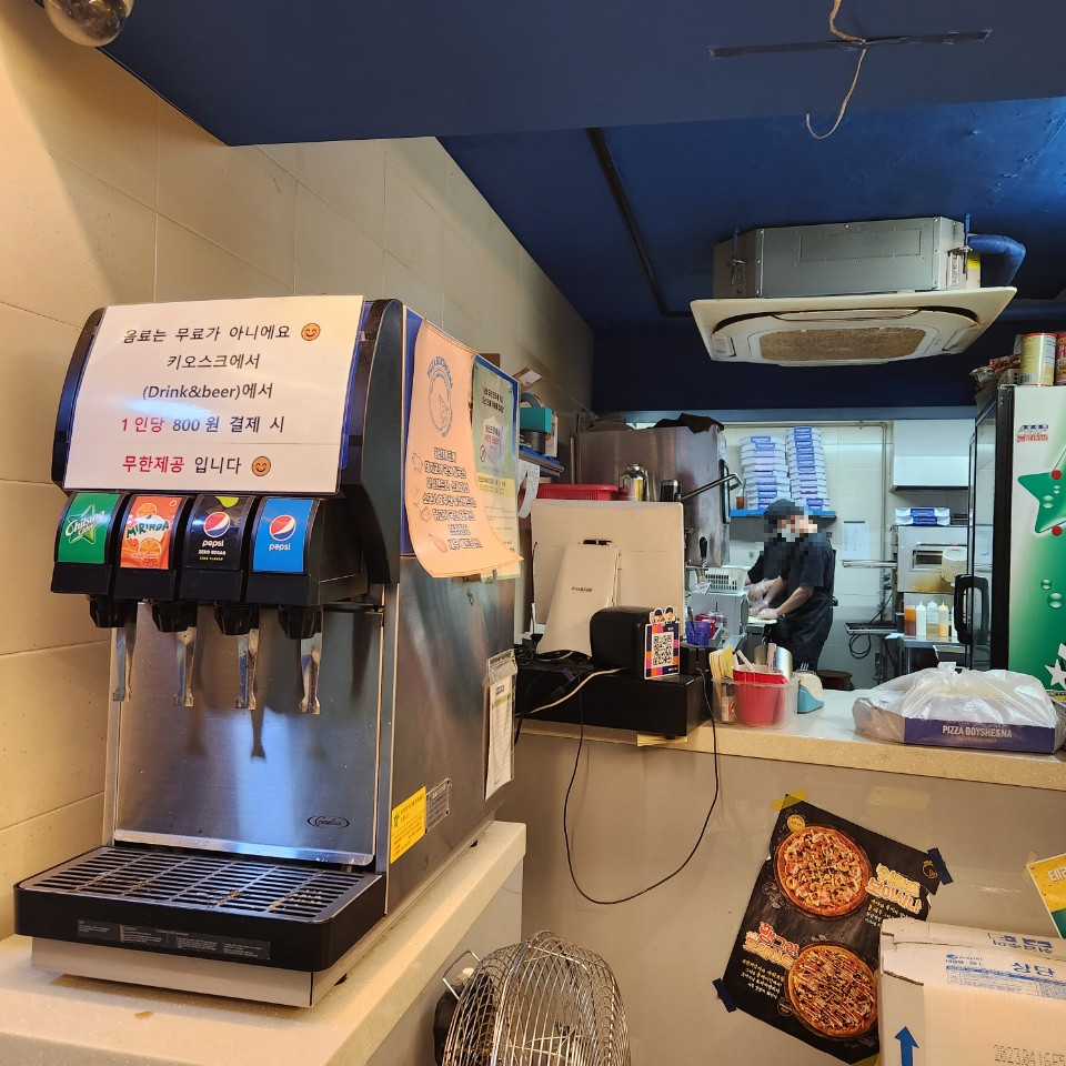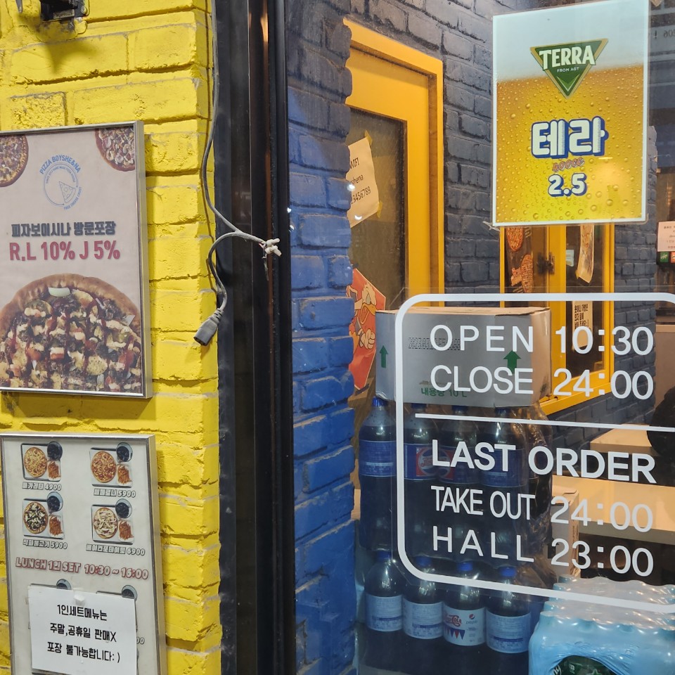 파란색 간판으로 PIZZA BOYSHENA 영어로 표기되어있습니다!