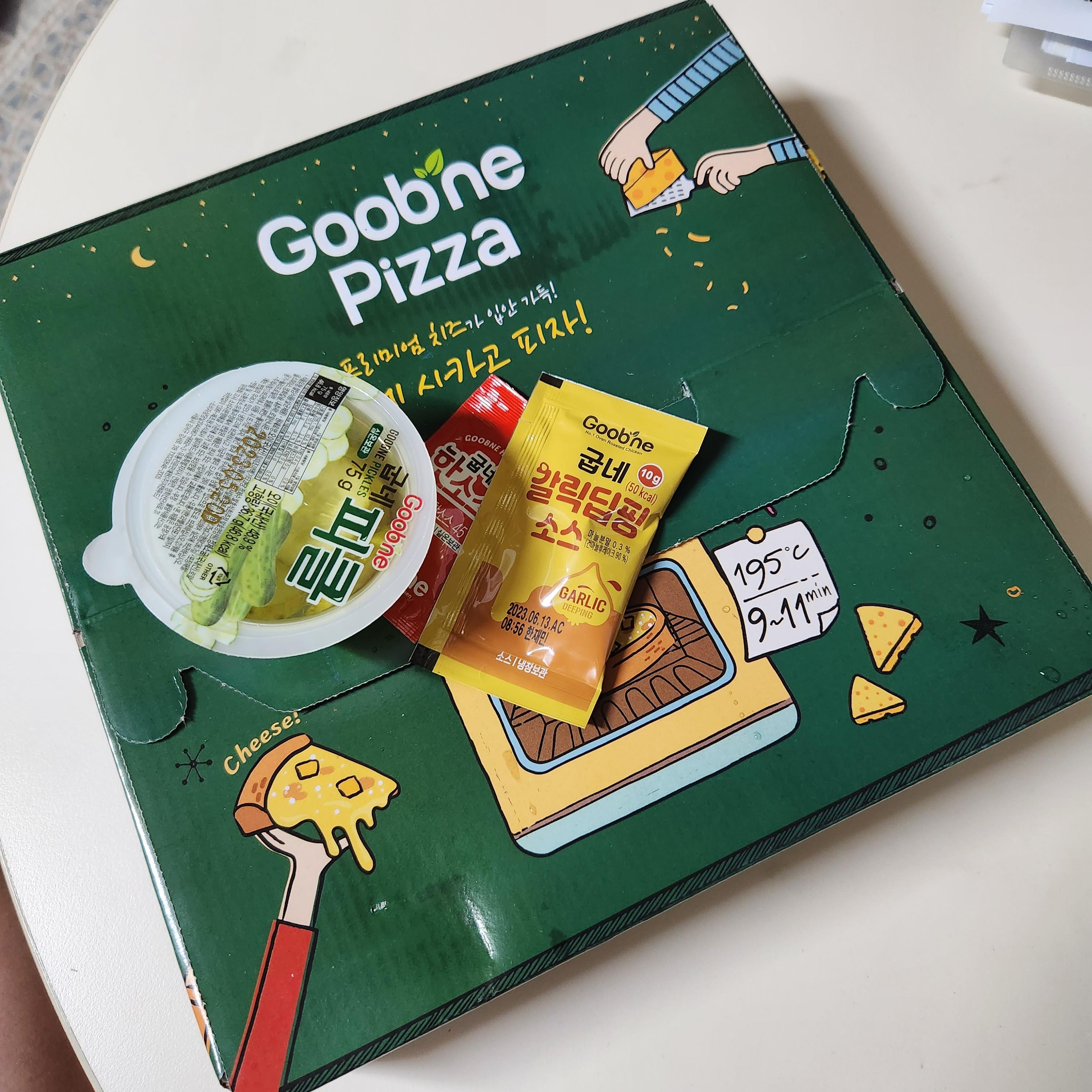 피자 한 판에 피클, 핫소스, 굽네갈릭딥핑소스 하나씩 제공됩니다!