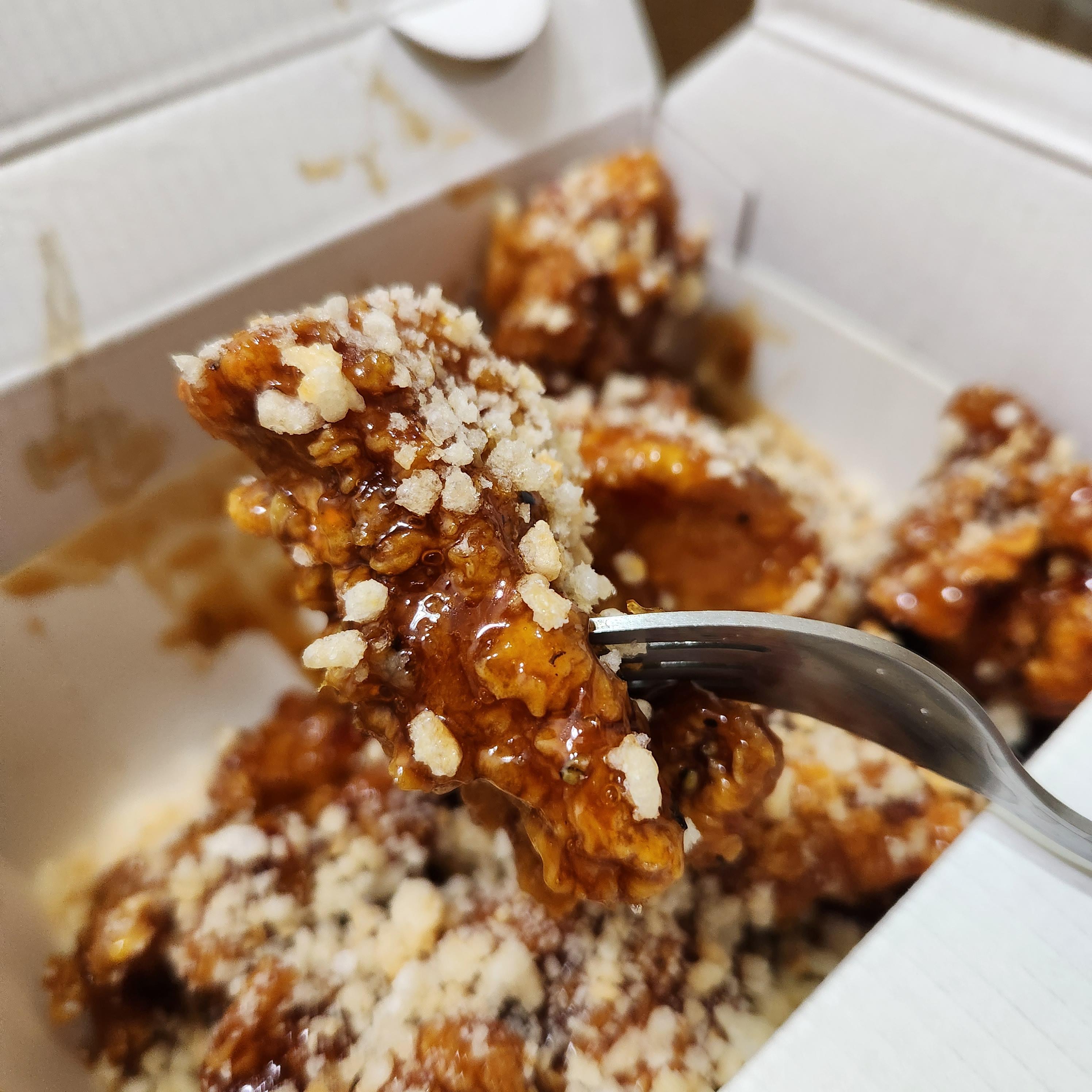 꿀간장 소스와 크런치한 누룽지가 만나 단짠과 바삭함을 함께 즐기는 순살치킨의 비주얼!!