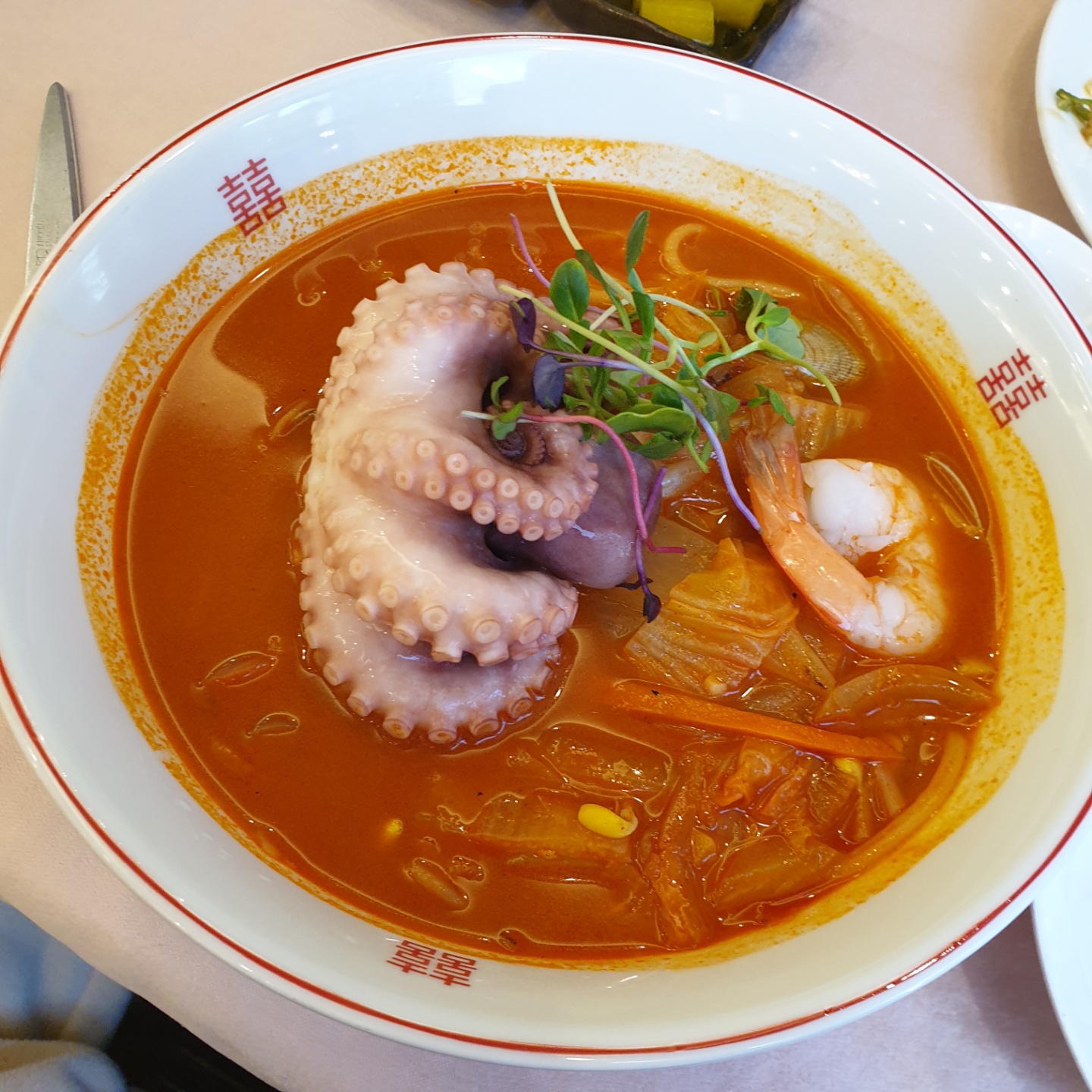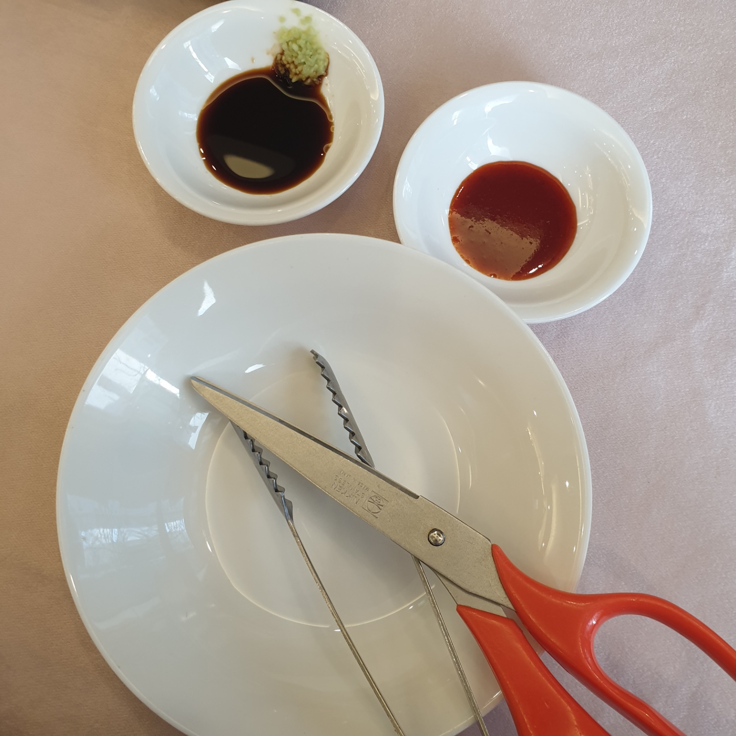 삼선 짬뽕을 시켜서 집게&가위, 간장와사비, 매운 소스도 같이 나왔네요