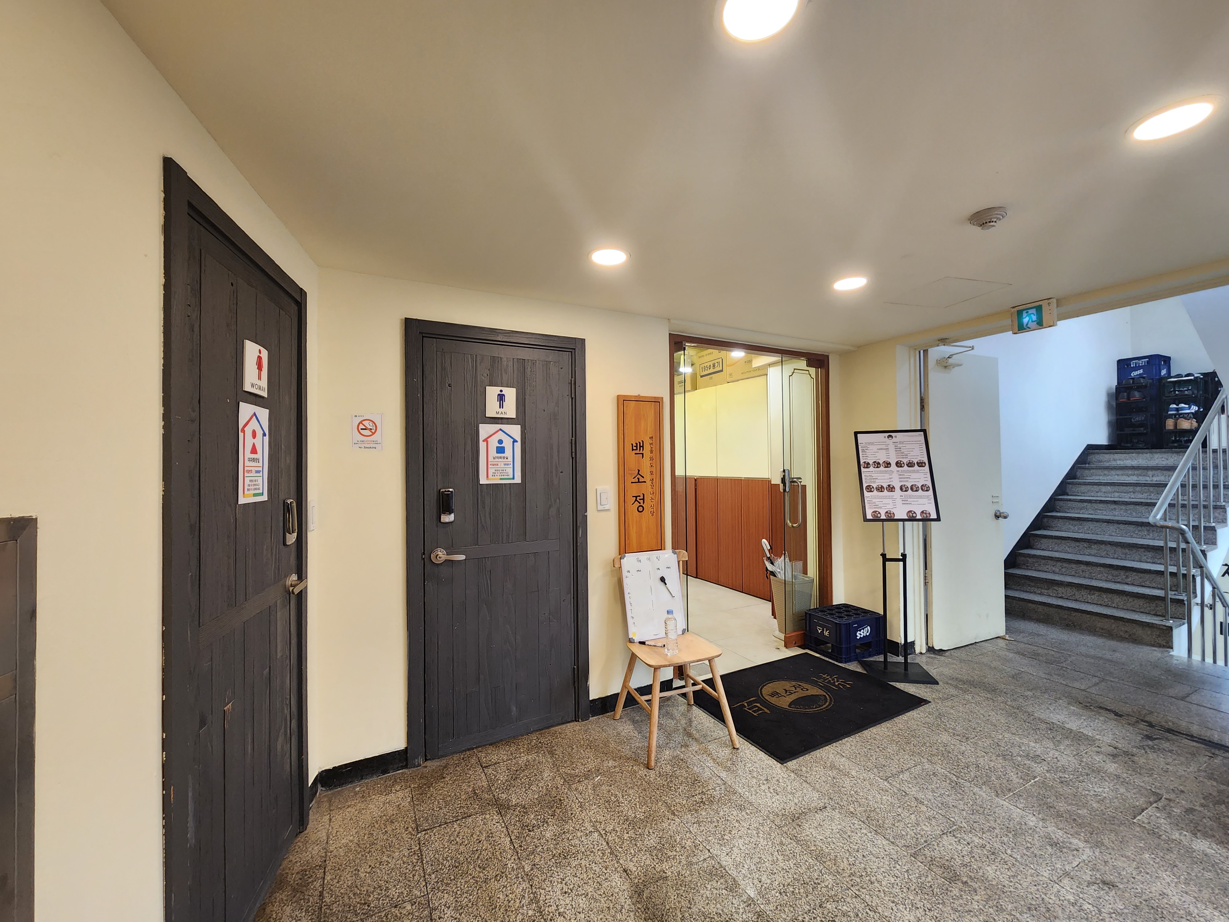 백소정이 이런 의미가 담겨있는 이름이네요. 손님이 많은지 웨이팅 작성할 수 있는 보드판도 의자에 마련되어 있습니다!