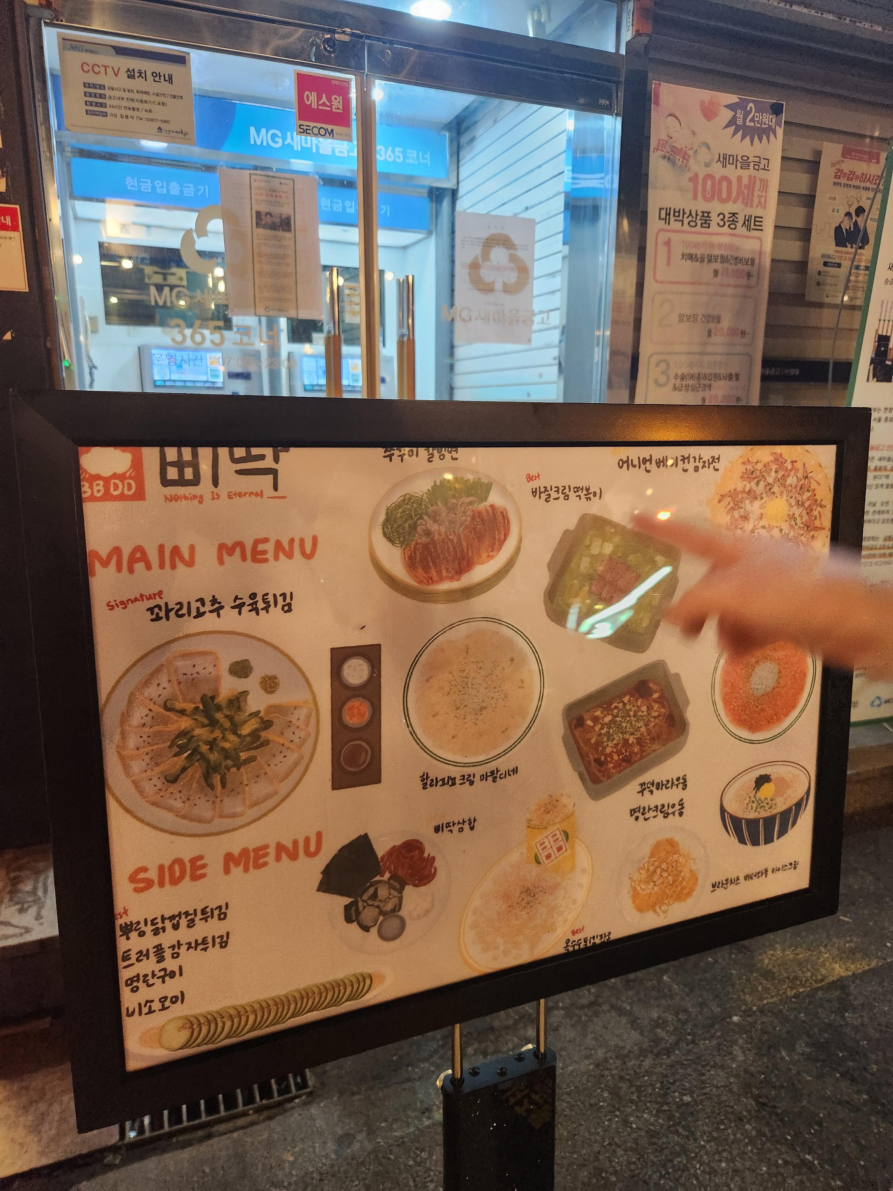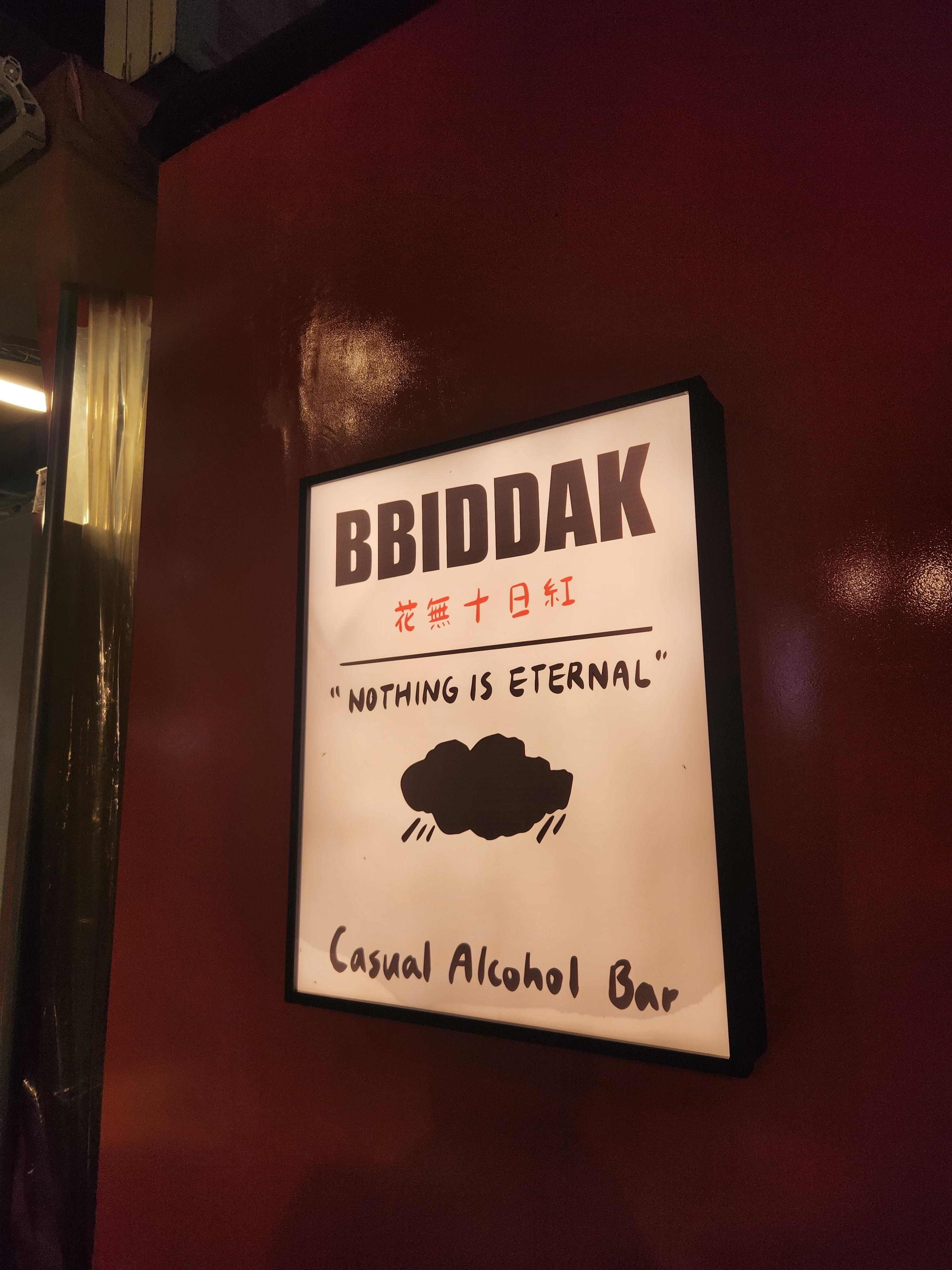 매장 앞에 큼지막한 입간판과 'BBIDDAK' 의 영문명으로 쓰인 가게 간판을 보실 수 있습니다!