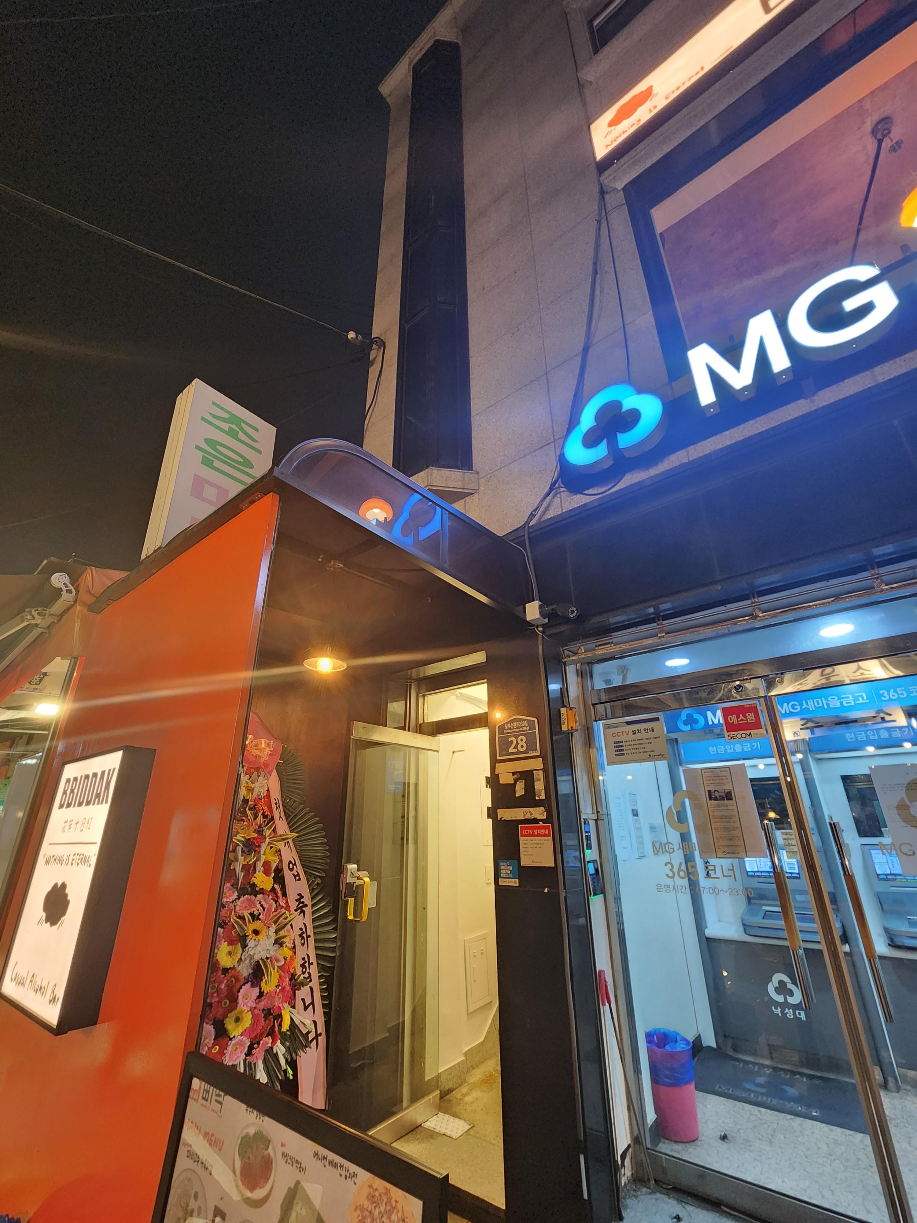 MG 새마을 인출기 바로 옆에 올라가는 입구가 있습니다.