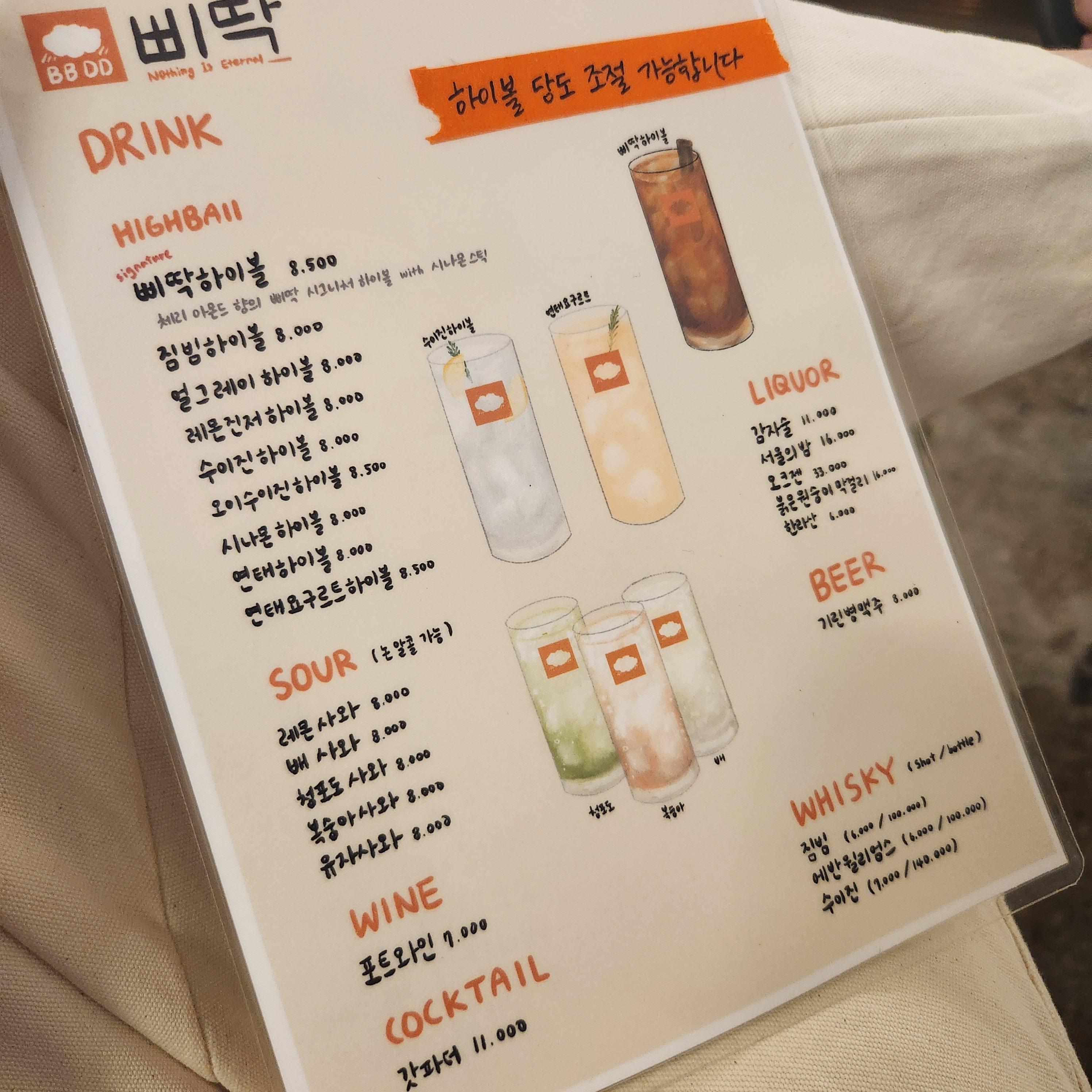 마실 것으로는 삐딱 하이볼을 시켜봤습니다~