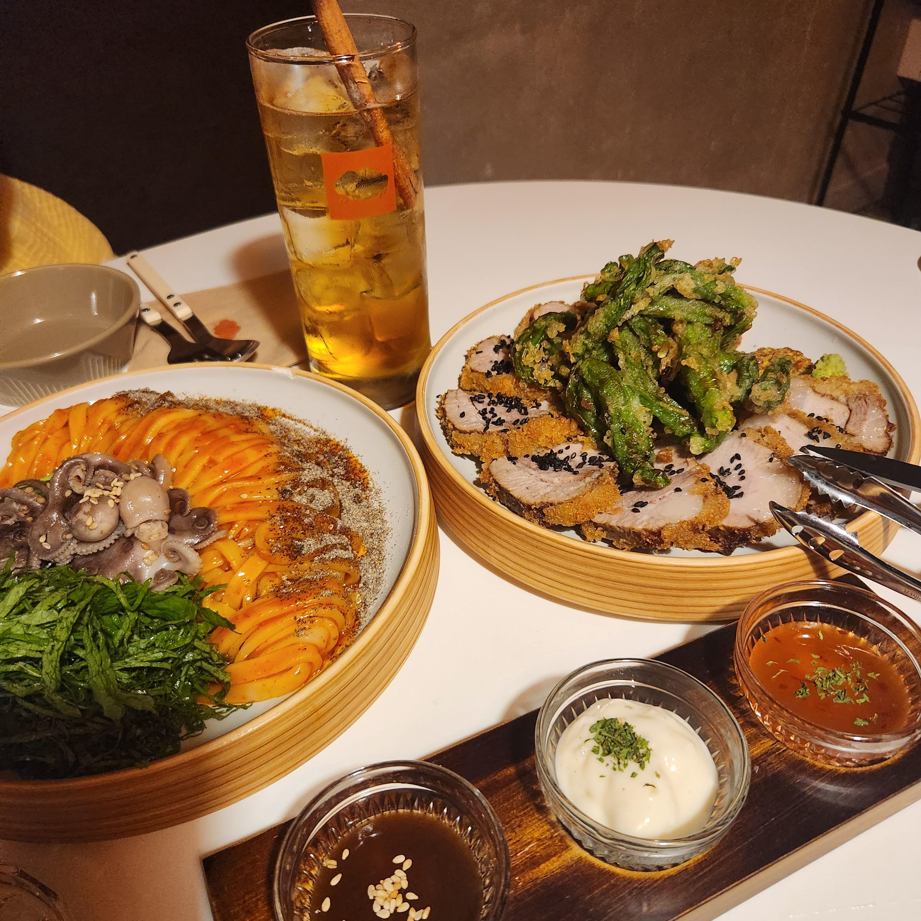 저희는 이 집 시그니처와 베스트 메뉴인 꽈리고추 수육튀김&주꾸미 칼빔면을 주문했고요