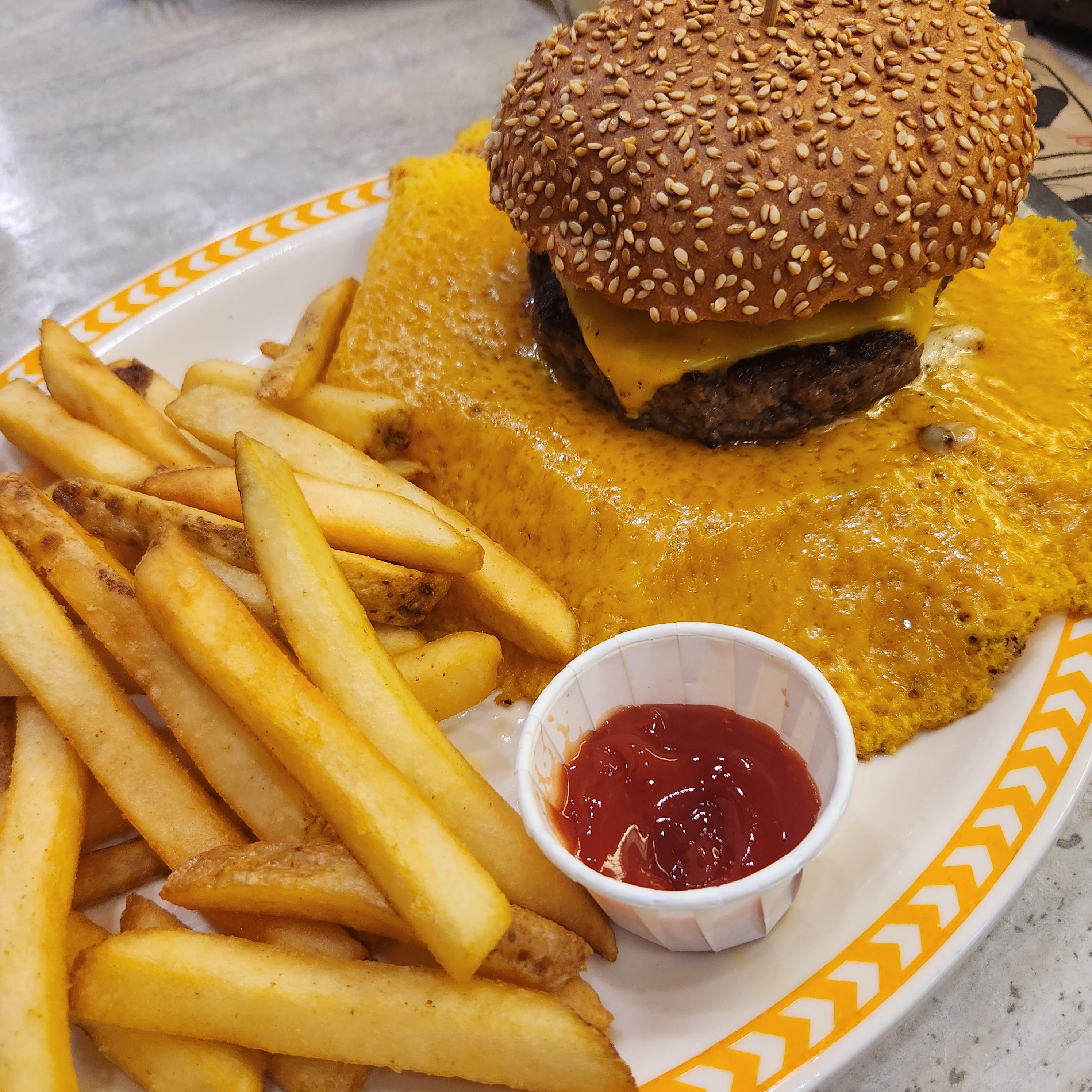 바로 위 버거는 치즈 스커트로 넓게 퍼진 치즈가 정말 특색 있었고요