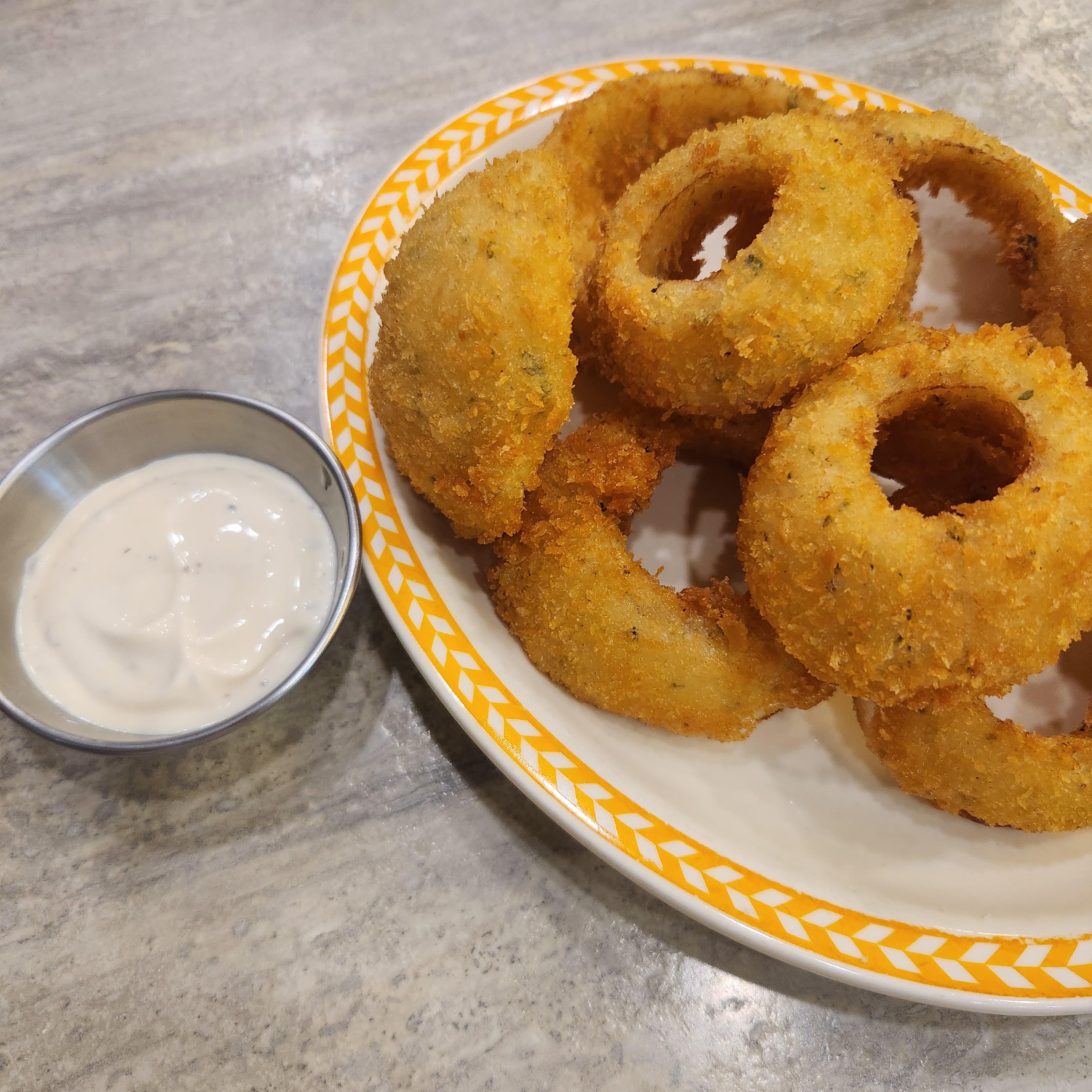 정말 큼지막한 사이즈의 어니언링입니다. 바삭하니 튀김의 정도도 너무 좋았고요