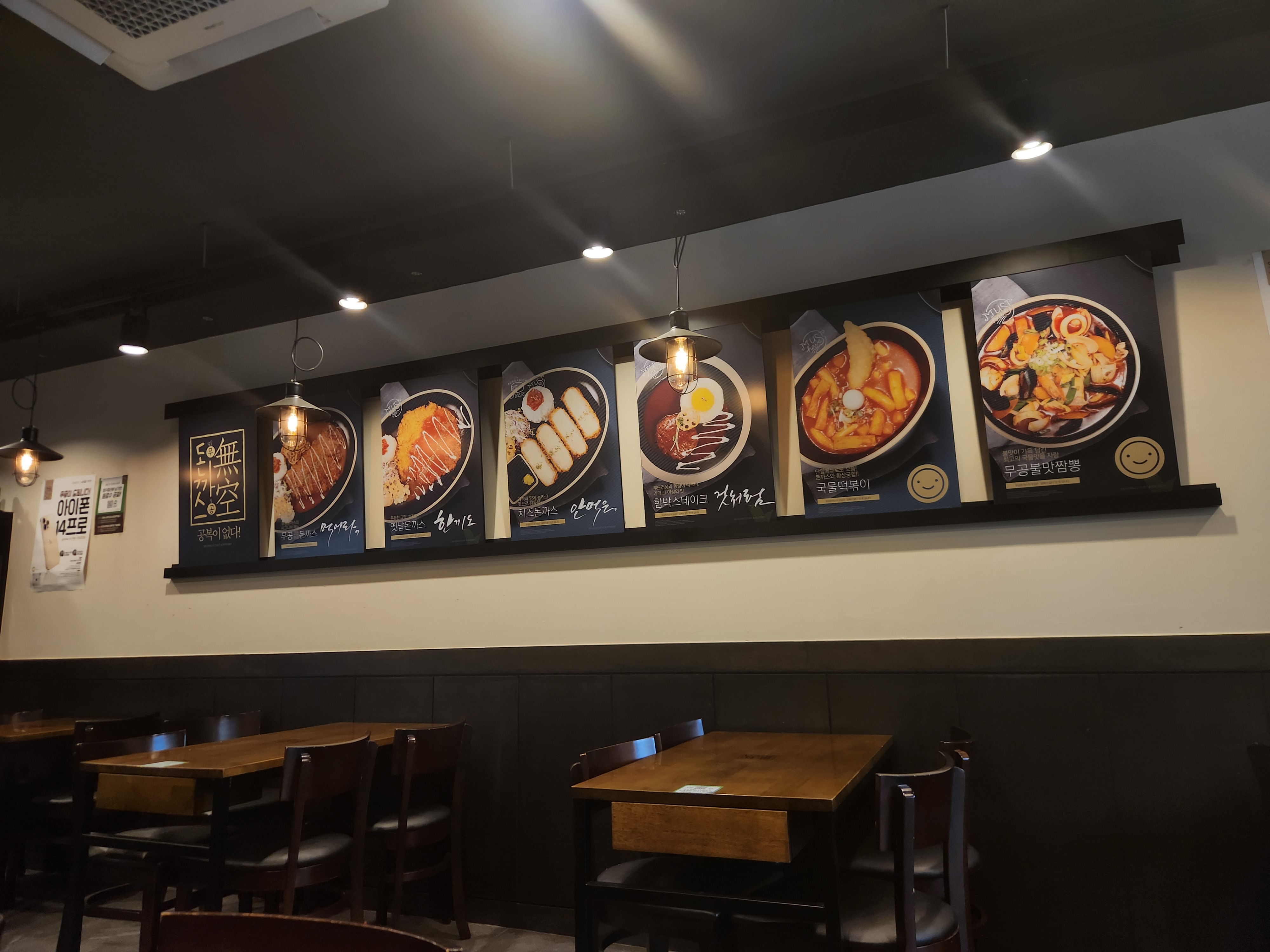 돈까스부터 스테이크, 떡볶이, 면요리 다양하게 있더라고요.