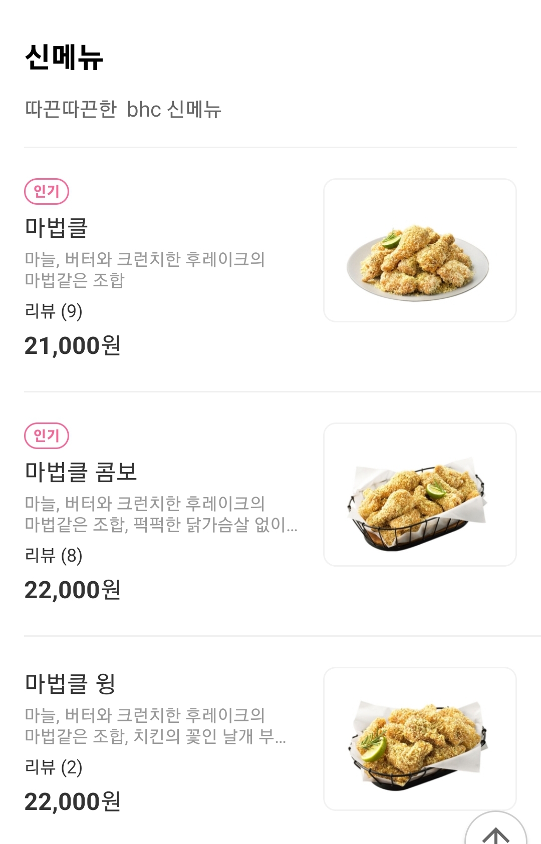 제가 오늘 포스팅해 볼 치킨은 얼마 전 BHC 신메뉴로 출시된 '마법클' 입니다~