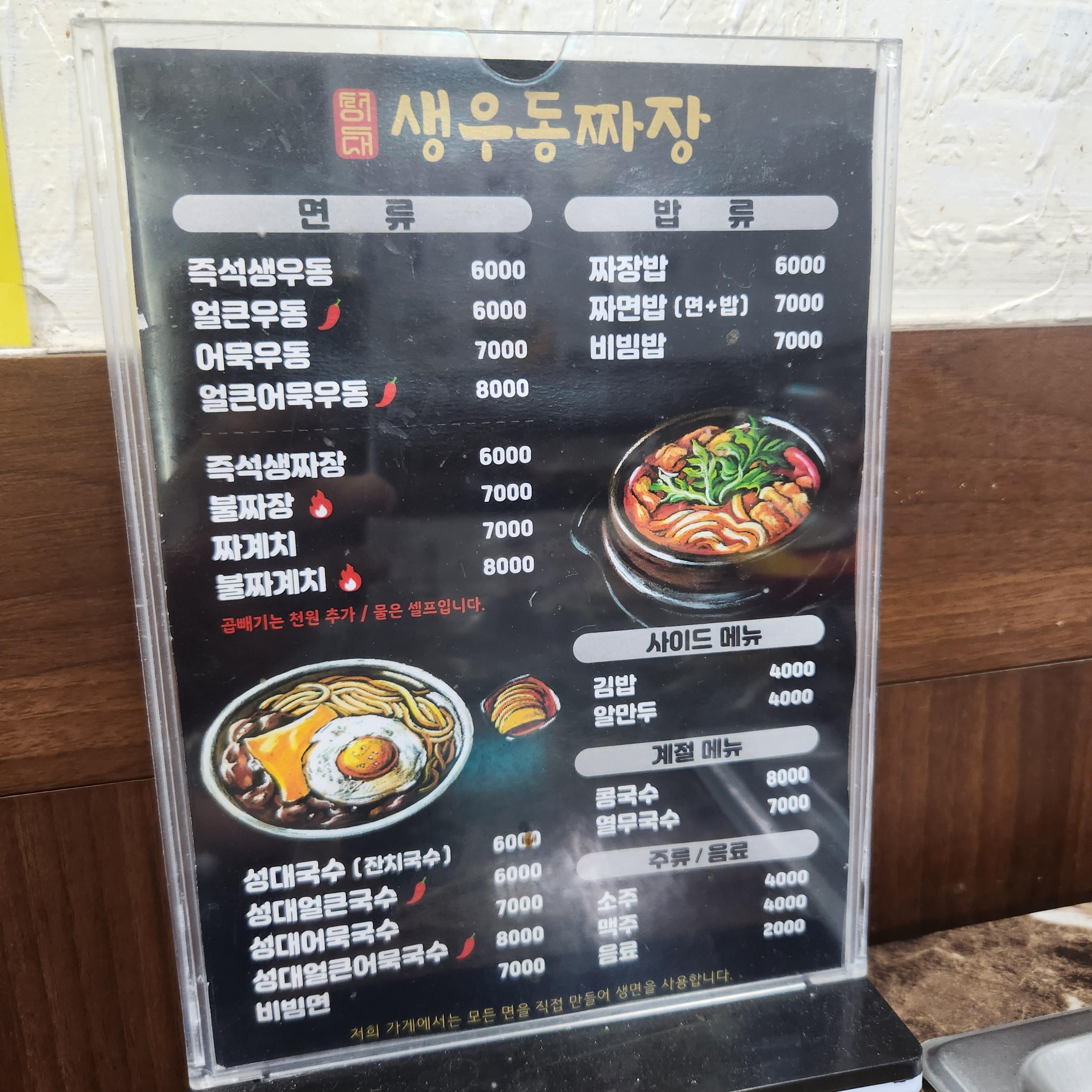 왜 성대생우동짜장인가 하는데 매장 건너편에 성대시장이 있어서 아마 매장 이름을 그렇게 지은 거 같아요!