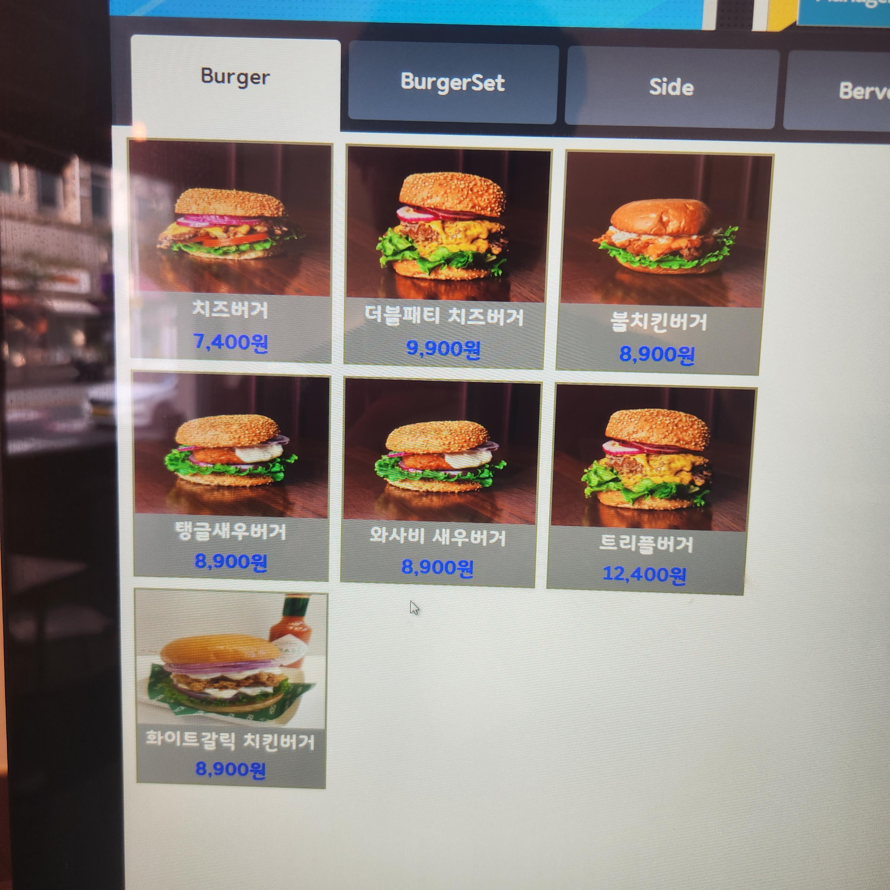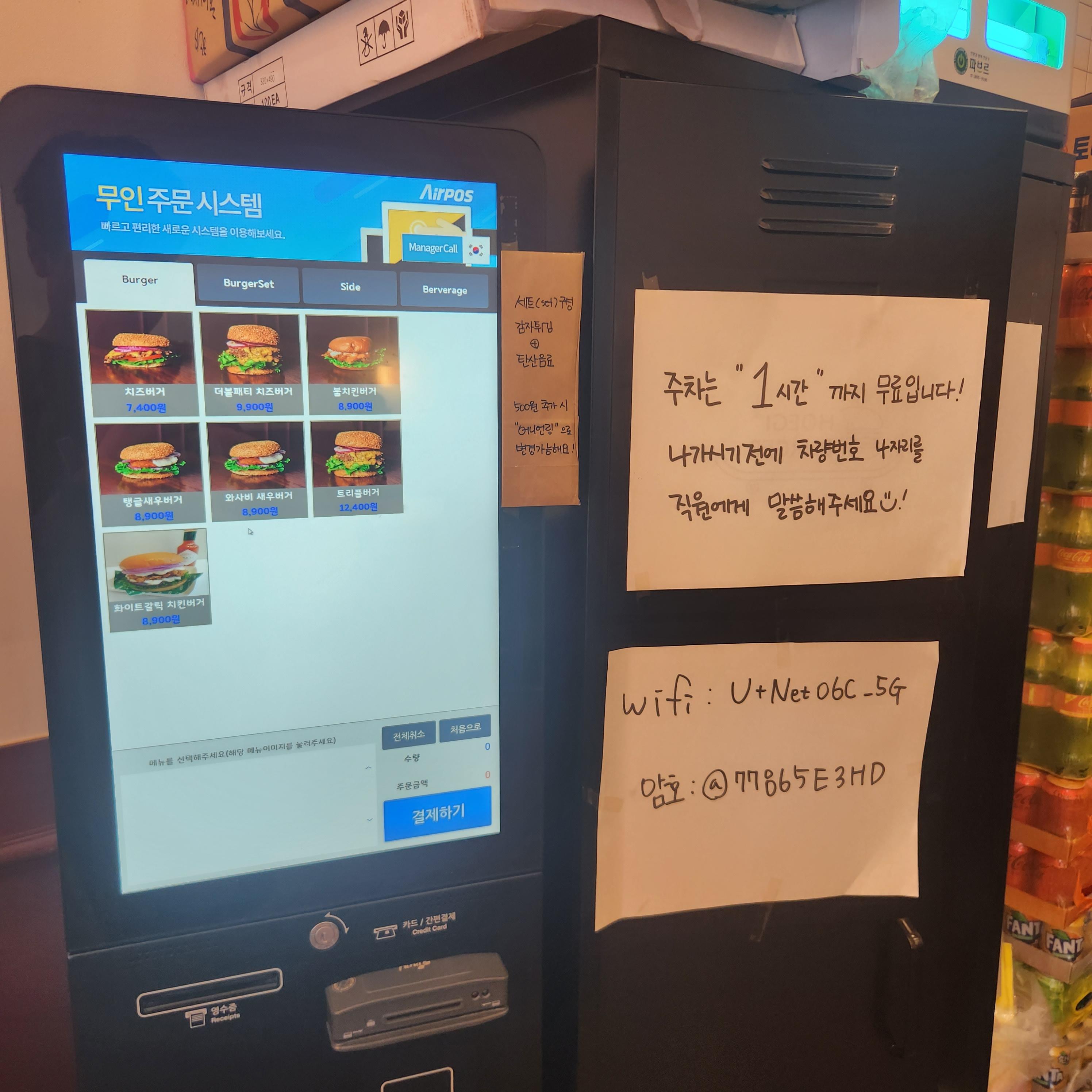 키오스크에서 바로 주문하시면 되고요 이 집 메인메뉴로는 딱 햄버거 한 가지만 있습니다!