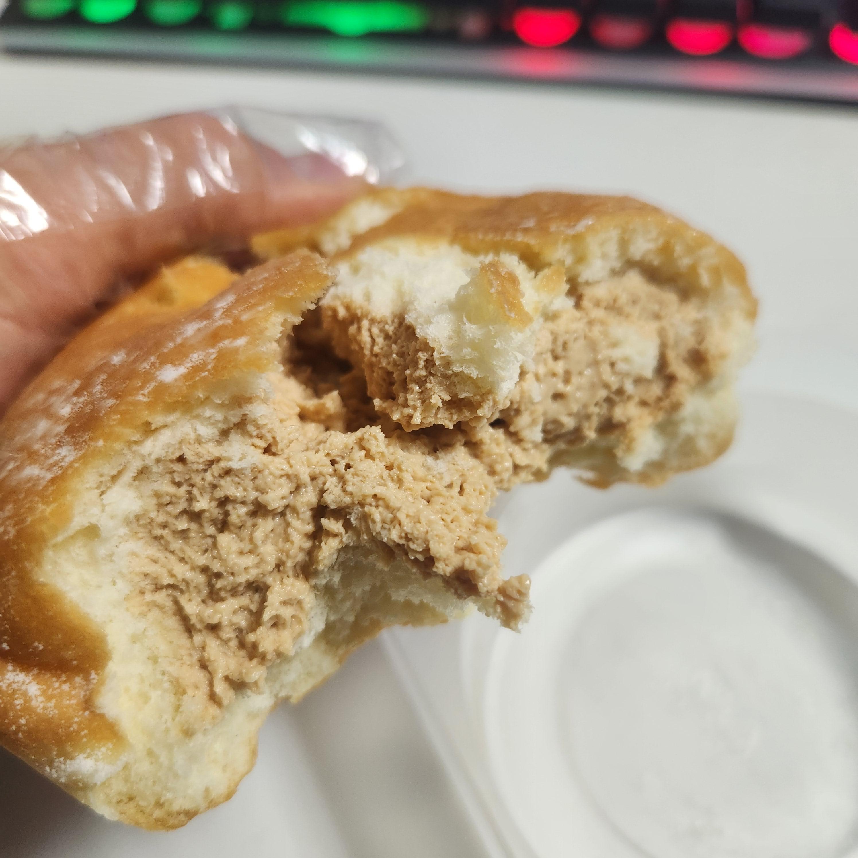 설탕이 코팅된 듯 번지르르한 겉면으로 정말 평범한 도넛 느낌입니다.