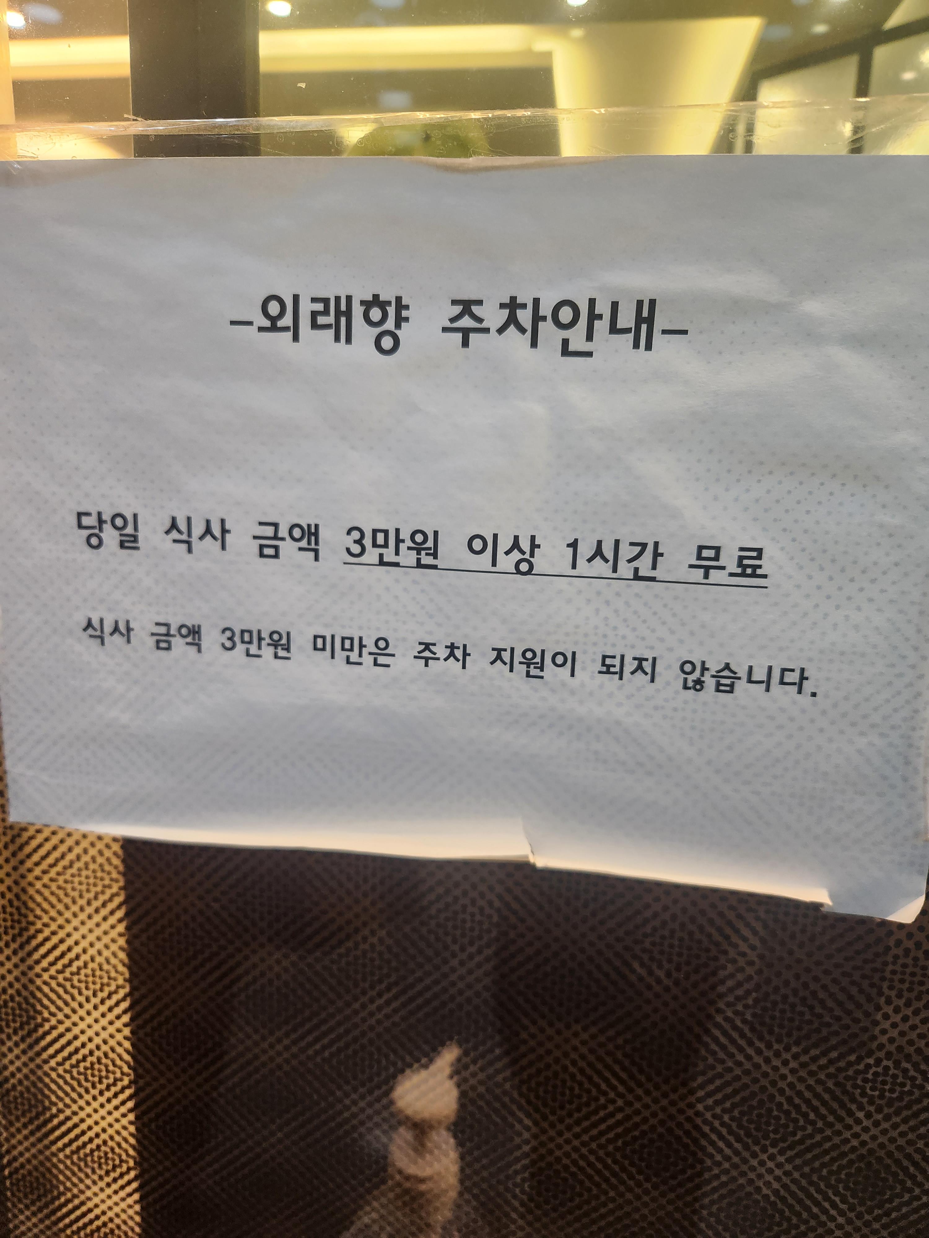 식사 금액 3만 원 이상시 1시간 무료로 주차 지원이 되고요,
