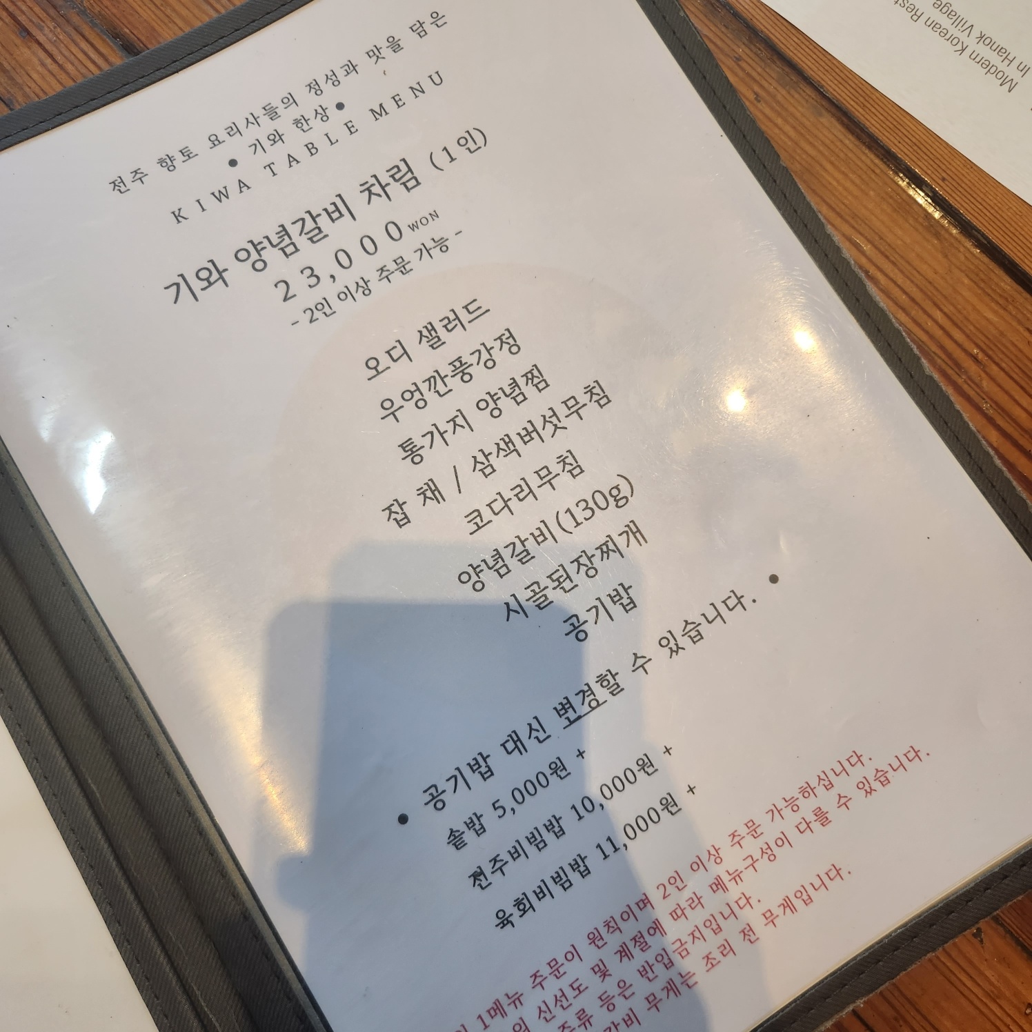 그중 하나는 공깃밥 대신 10,000원을 추가하여 전주비빔밥으로 변경했네요.
