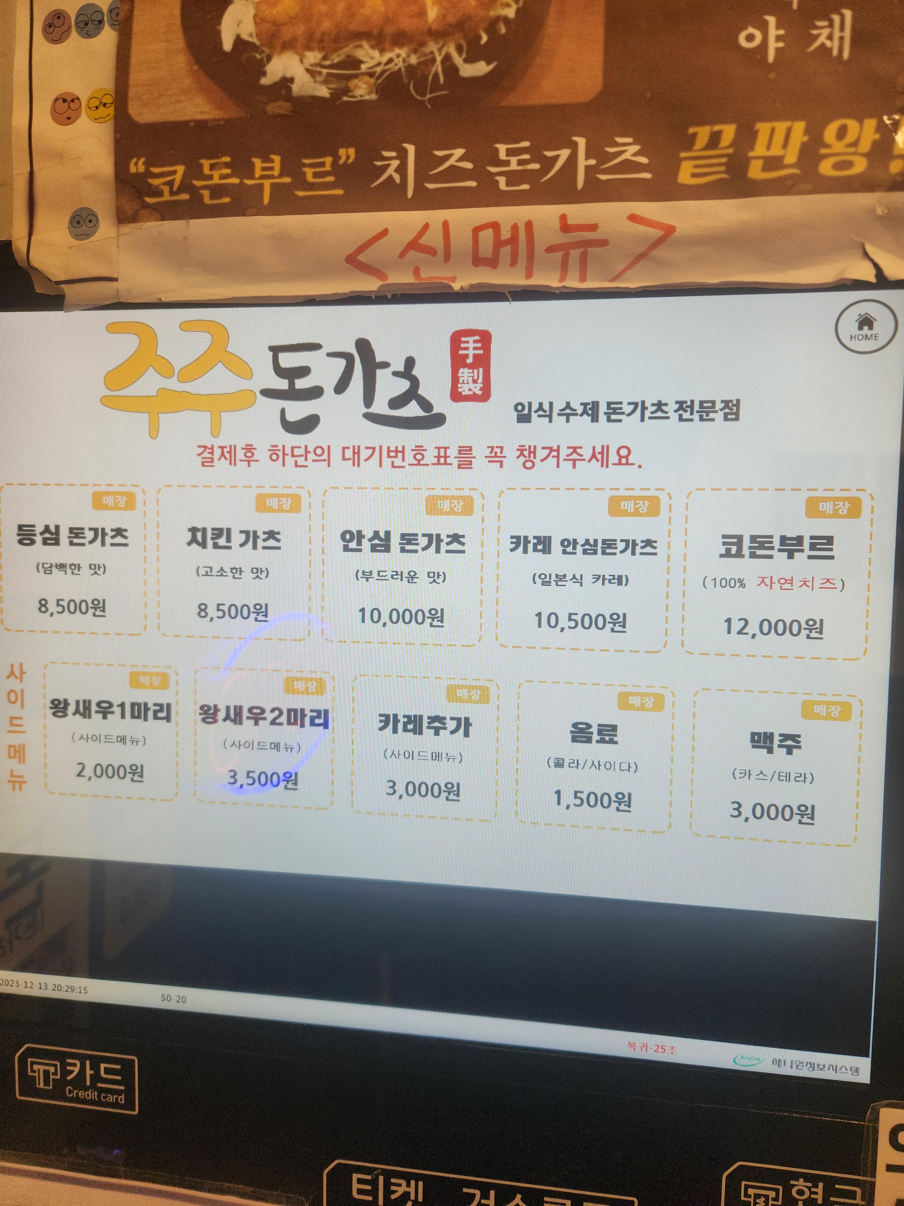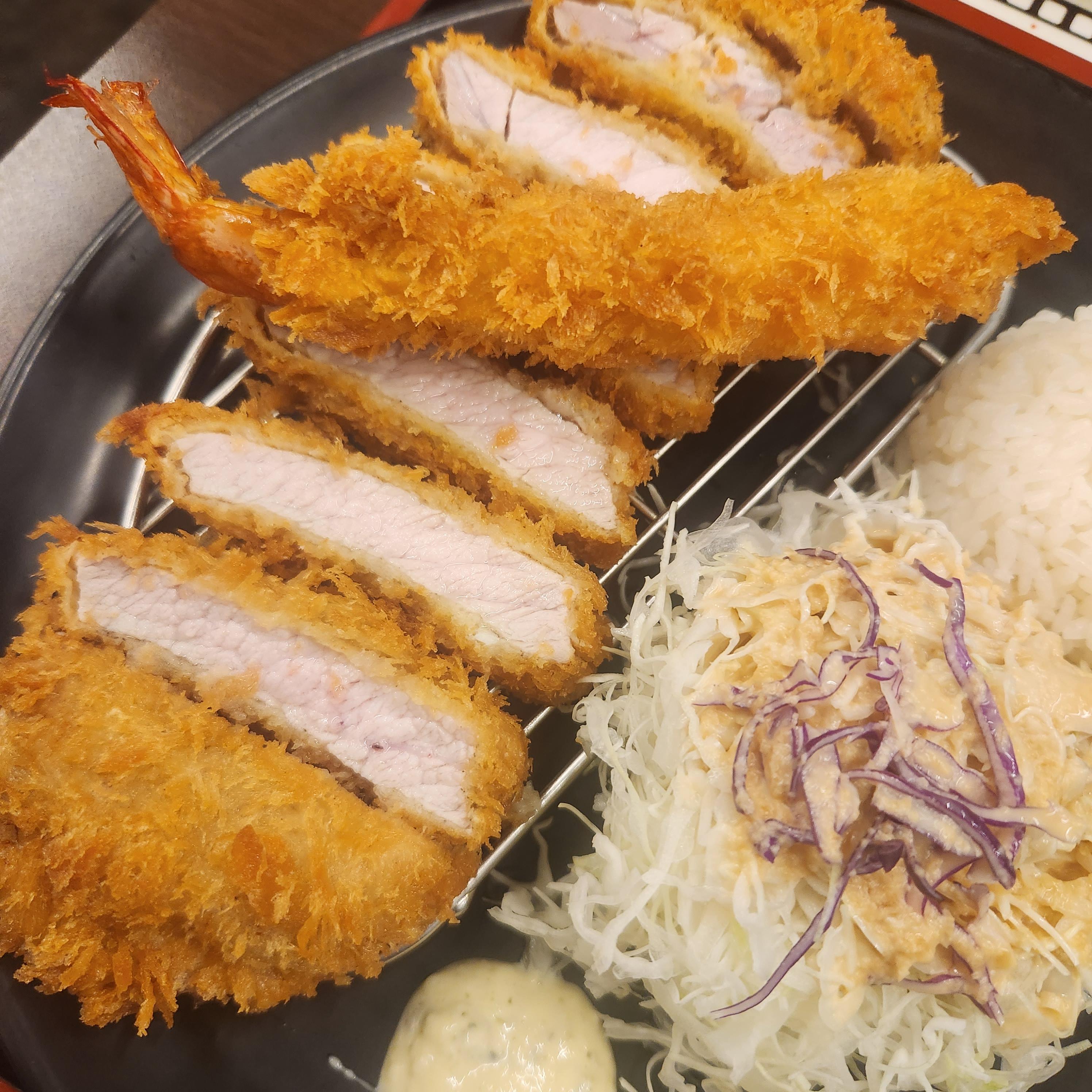 메뉴 구성은 깔끔하게 돈가츠와 카레, 왕새우 사이드가 있었습니다.