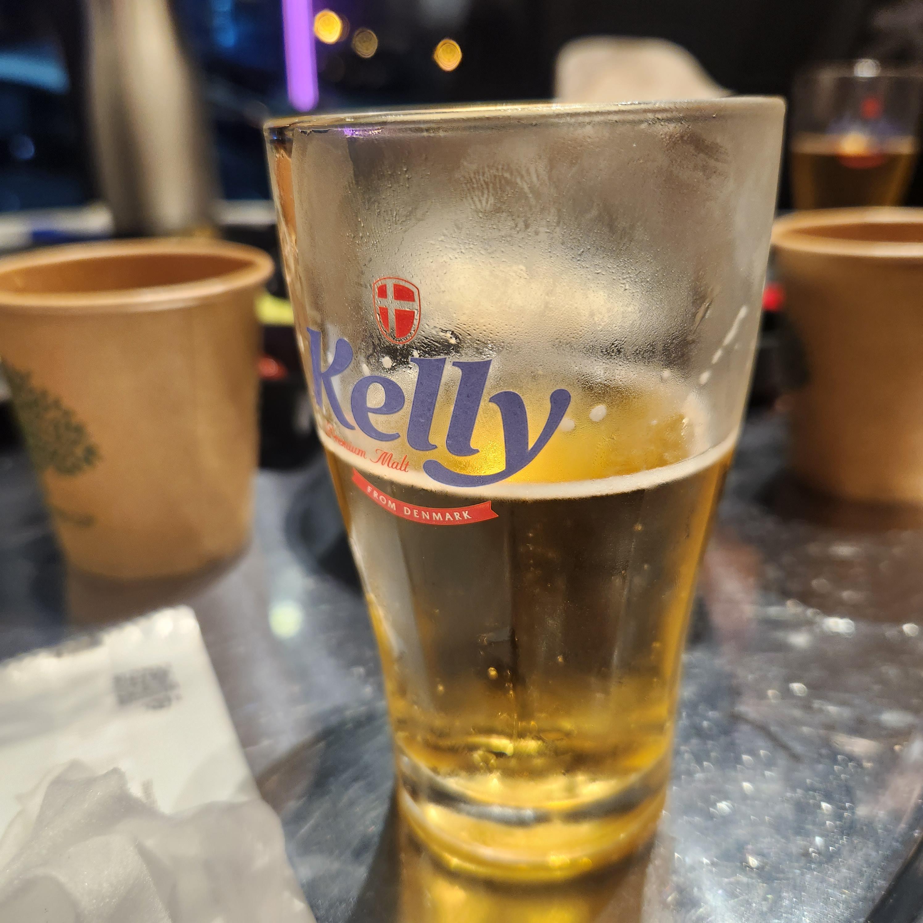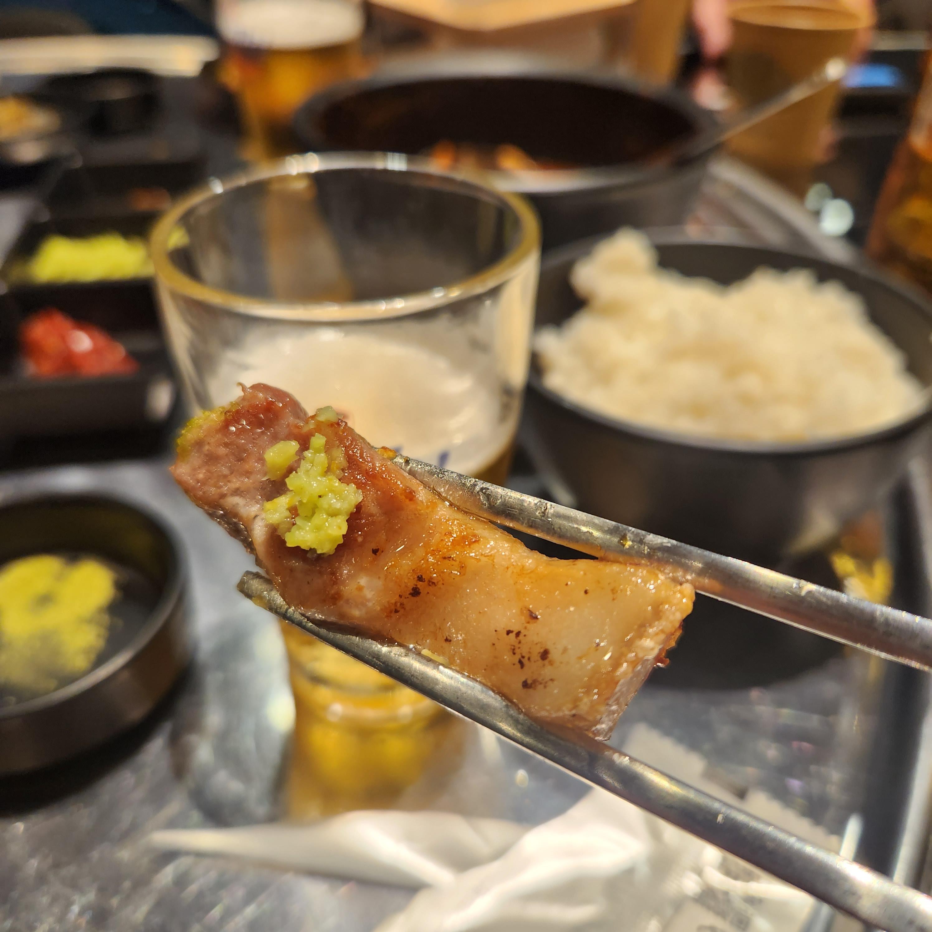 고기를 몇 점 먹는데 맥주를 주문 안 할 수가 없겠더라고요..