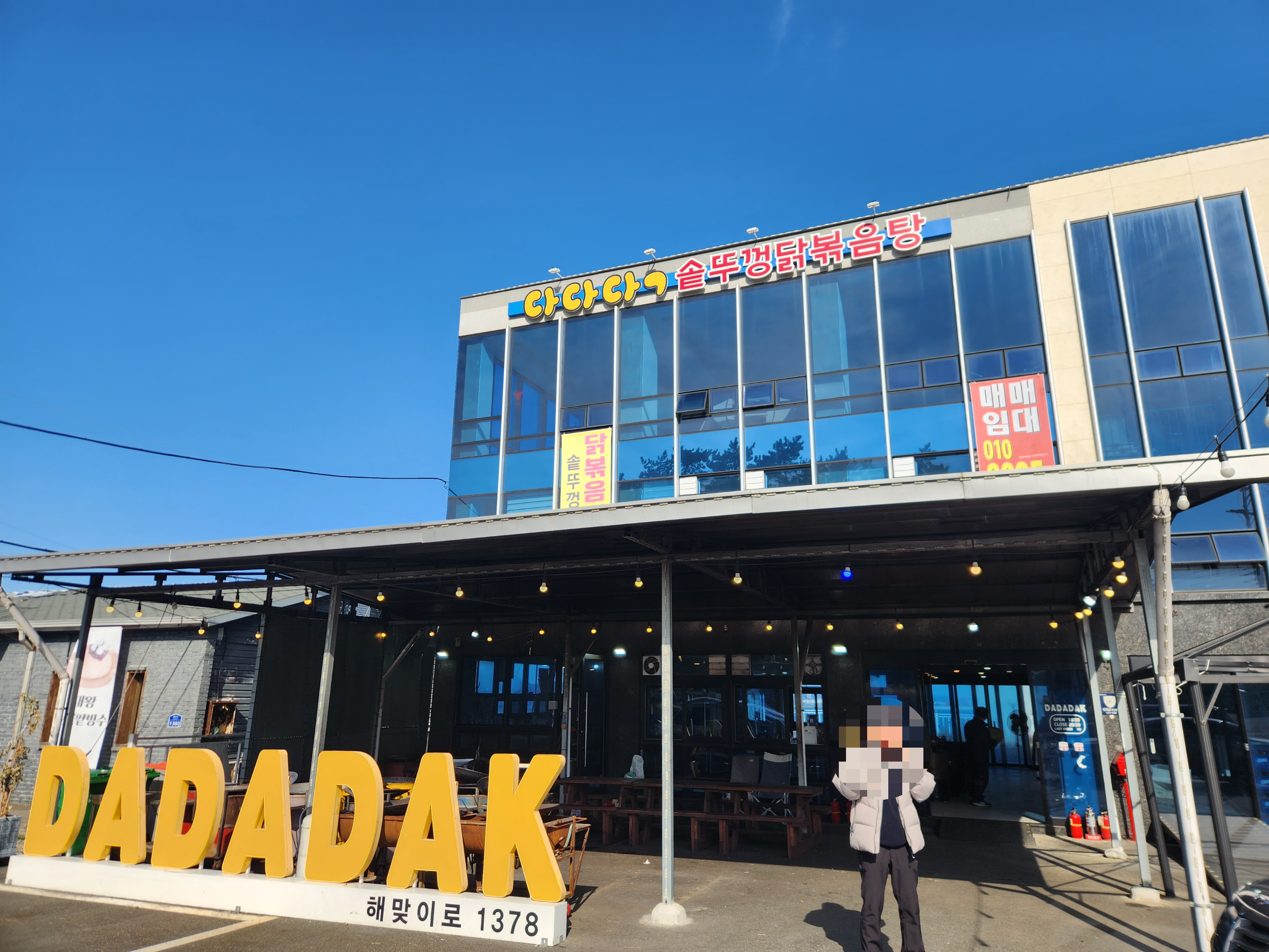 가게 이름은 다다닥(DADADAK) 문구가 벽면에 부착되어 있습니다.