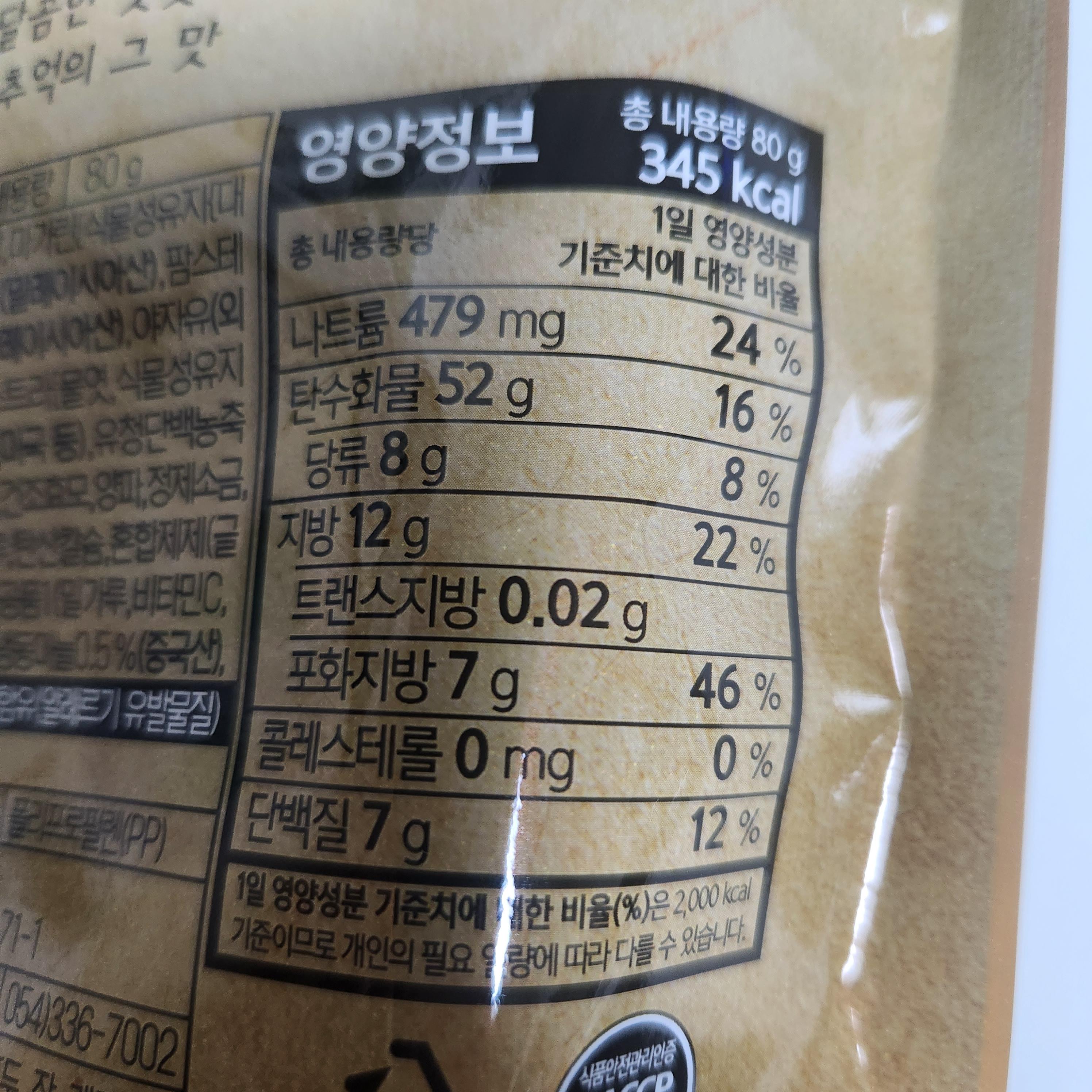 345kcal로 400 안 되는 착한 과자 축에 속하네요ㅎㅎ 대신 포화지방이 좀 높긴 하네요..