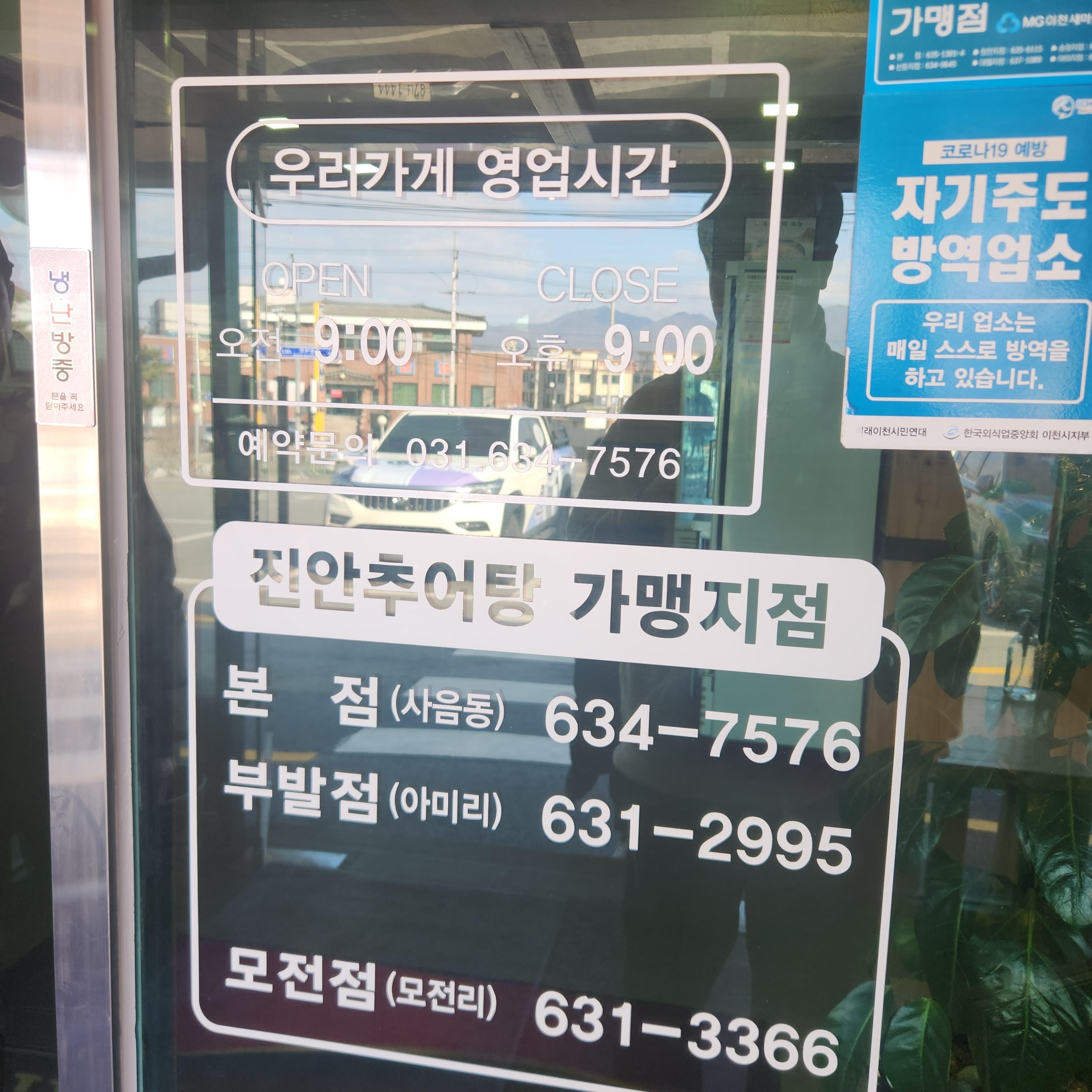 진안추어탕 ㅇ 주소 : 경기 이천시 경충대로 2935 ㅇ 영업시간 :매일 09:00 ~ 21:00 ㅇ 가게번호 :031-634-7576