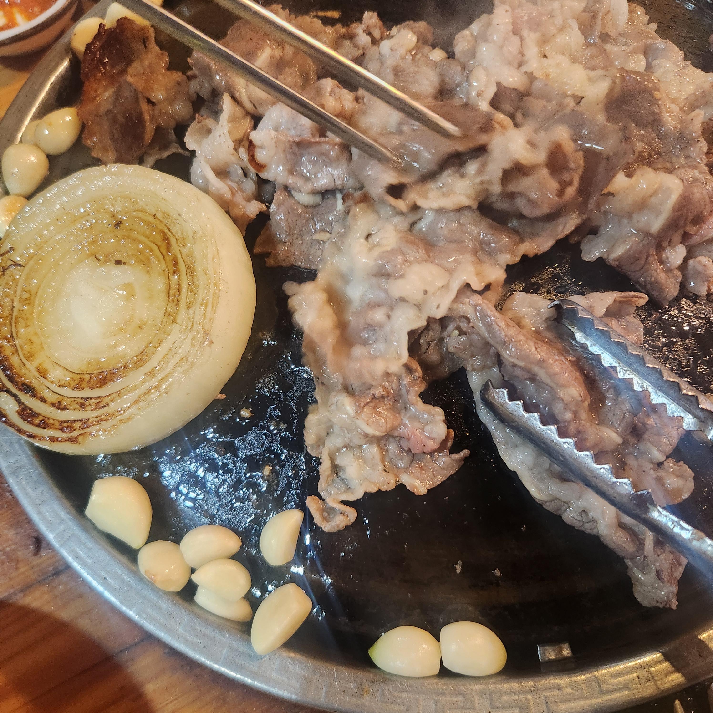 이 집만의 시그니처 불판에 갈비살들이 구워지는 소리와 모습을 보니 황홀했습니다.
