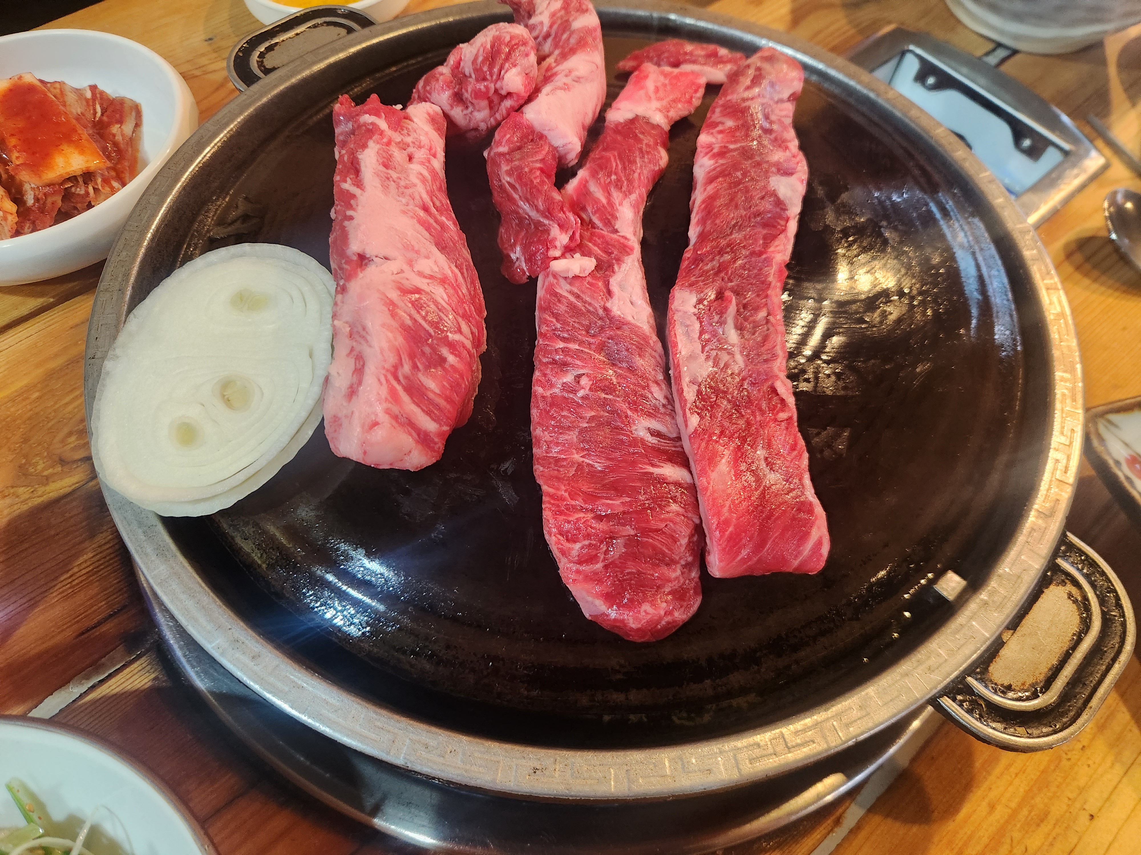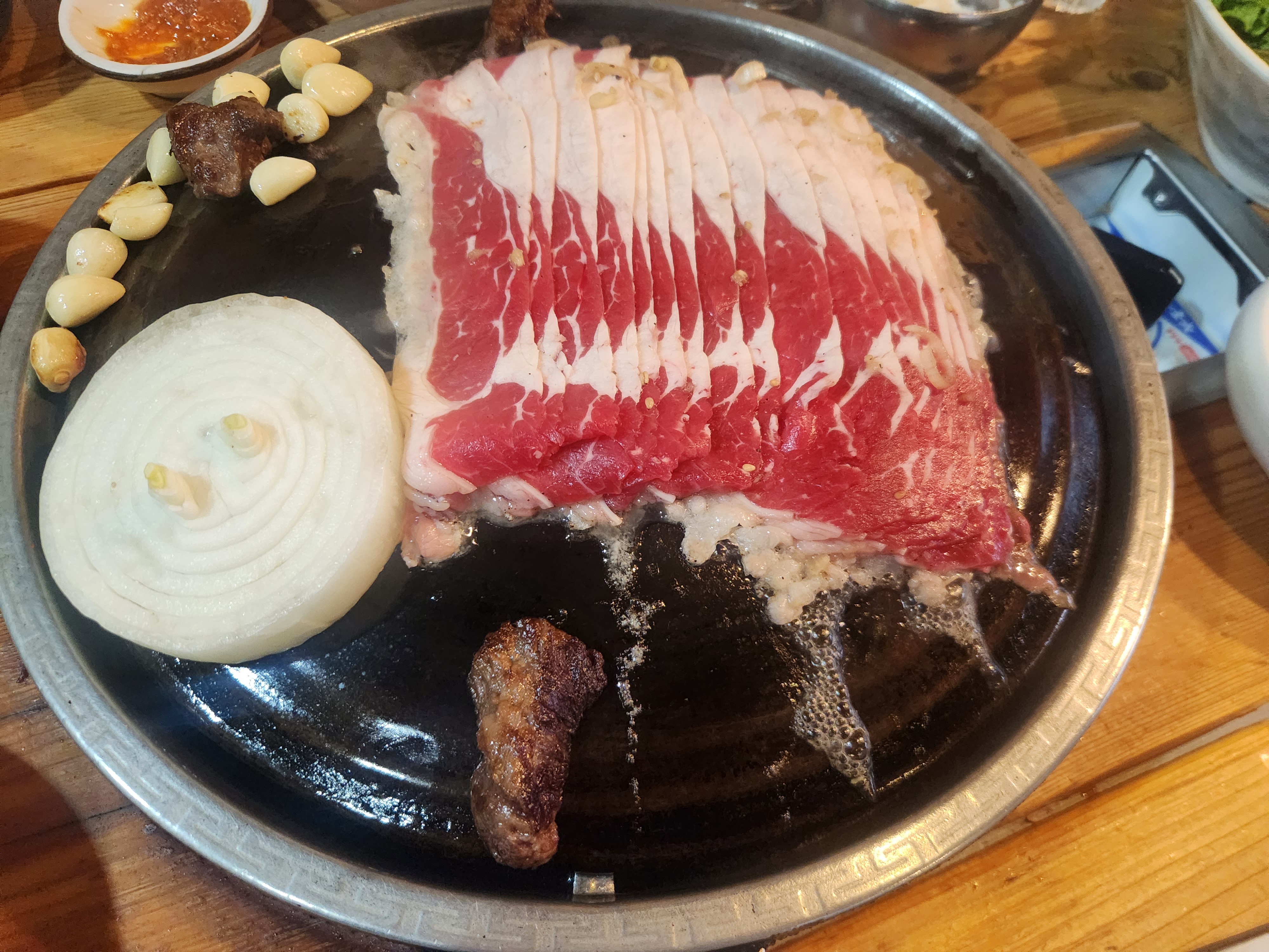 이 집 가마솥 같은 불판이 굉장히 매력 있습니다.