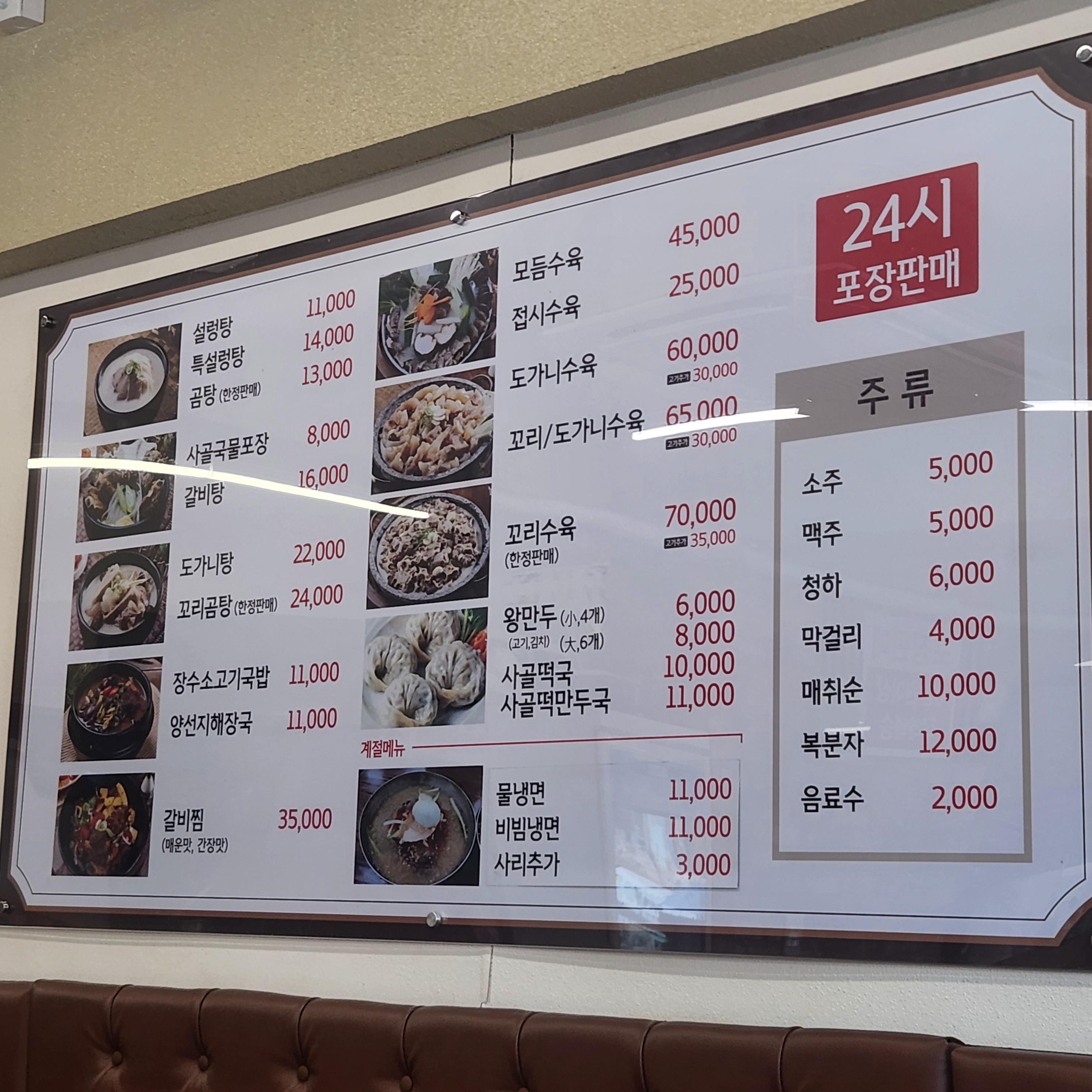 설렁탕, 갈비탕, 해장국 뚝배기 요리부터 수육, 갈비찜, 냉면 등 메뉴가 굉장히 다양하면서 알찼습니다.