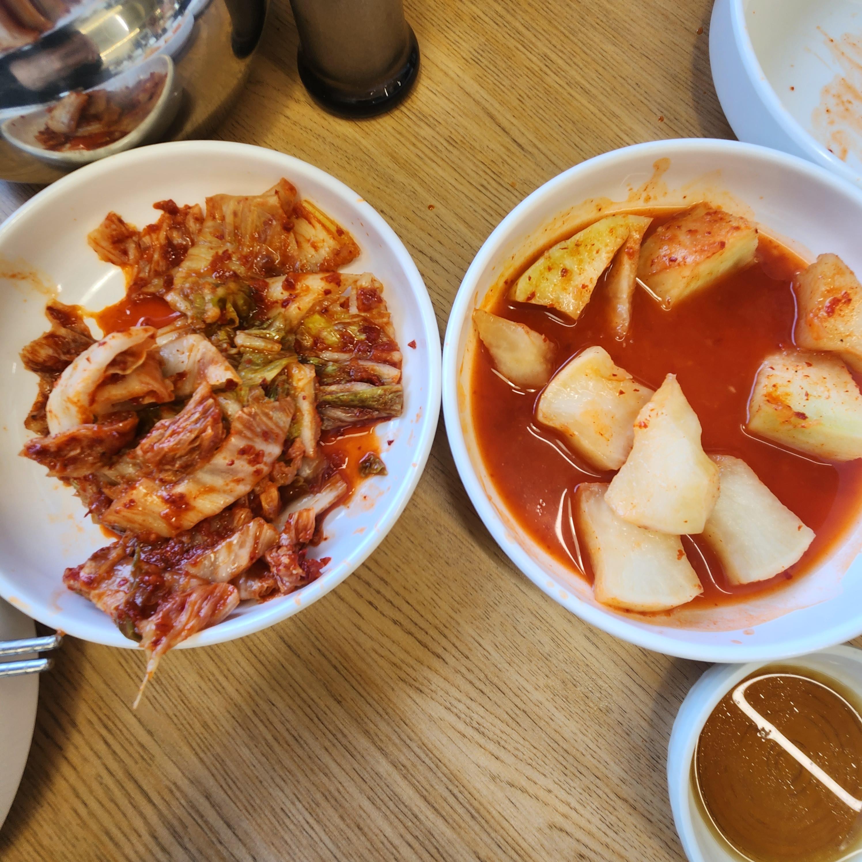 그리고 겉절이 김치와 깍두기 맛을 보니깐 맛집인 거 같아요!