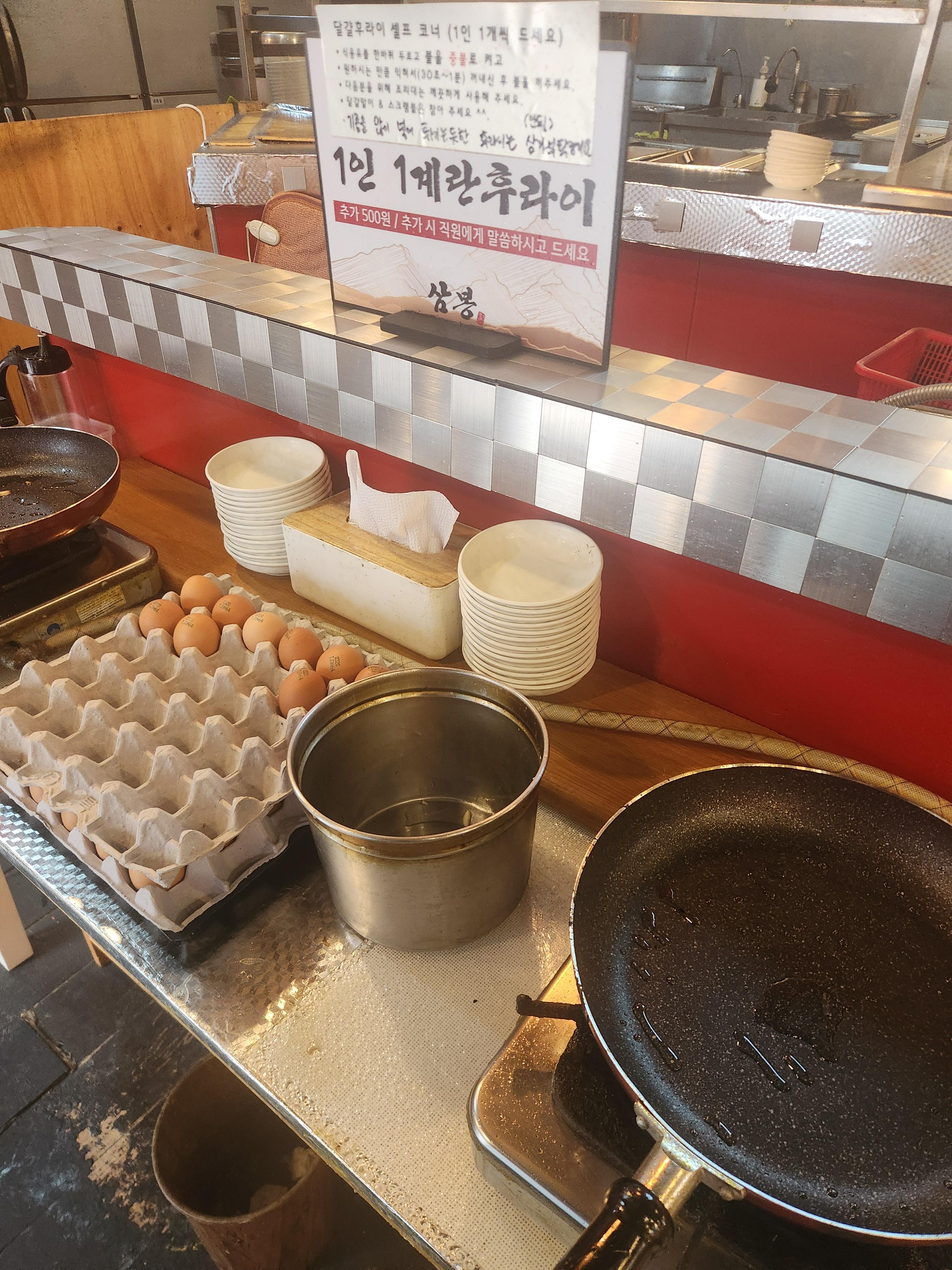 계란프라이는 셀프로 직접 구워드셔야 합니다.