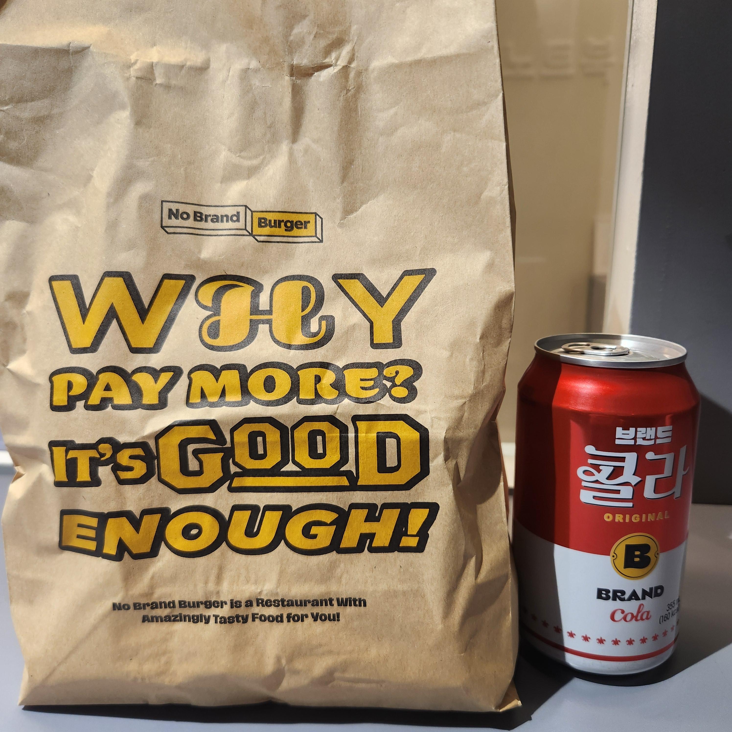 노브랜드 버거는 세트 포장 시 자사 브랜드인 캔 콜라를 제공해 줍니다.