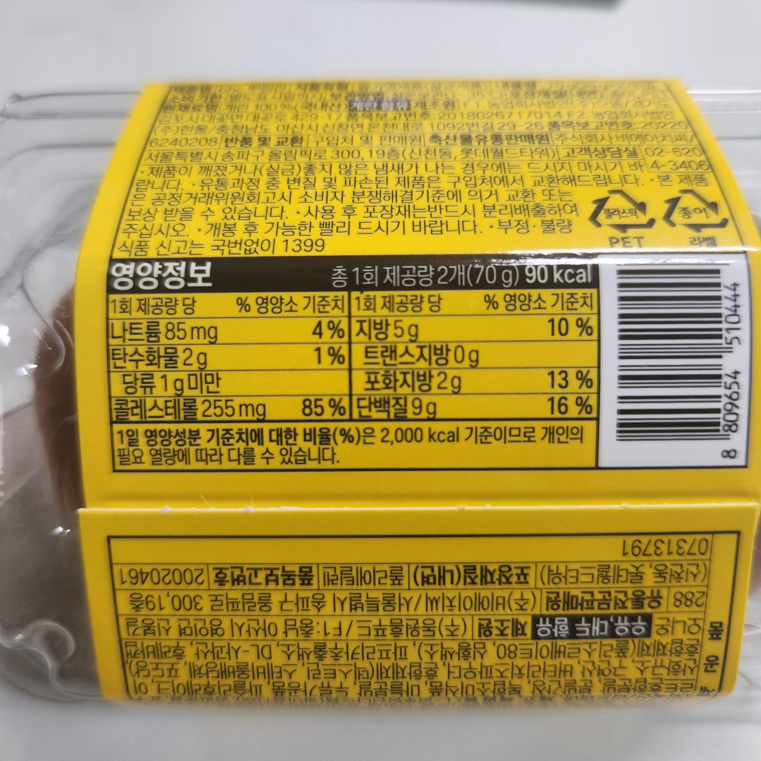 칼로리는 90kcal 부담 없네요. 단백질 함량도 꽤 높아서 치킨 많이 먹을까 걱정이 되면 뿌링란 드시면 될 거 같네요~ ㅎㅎ