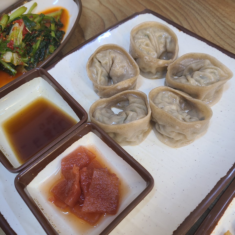 만두피를 메밀로 만들었네요 만두 속은 우리가 아는 만두 맛입니다!