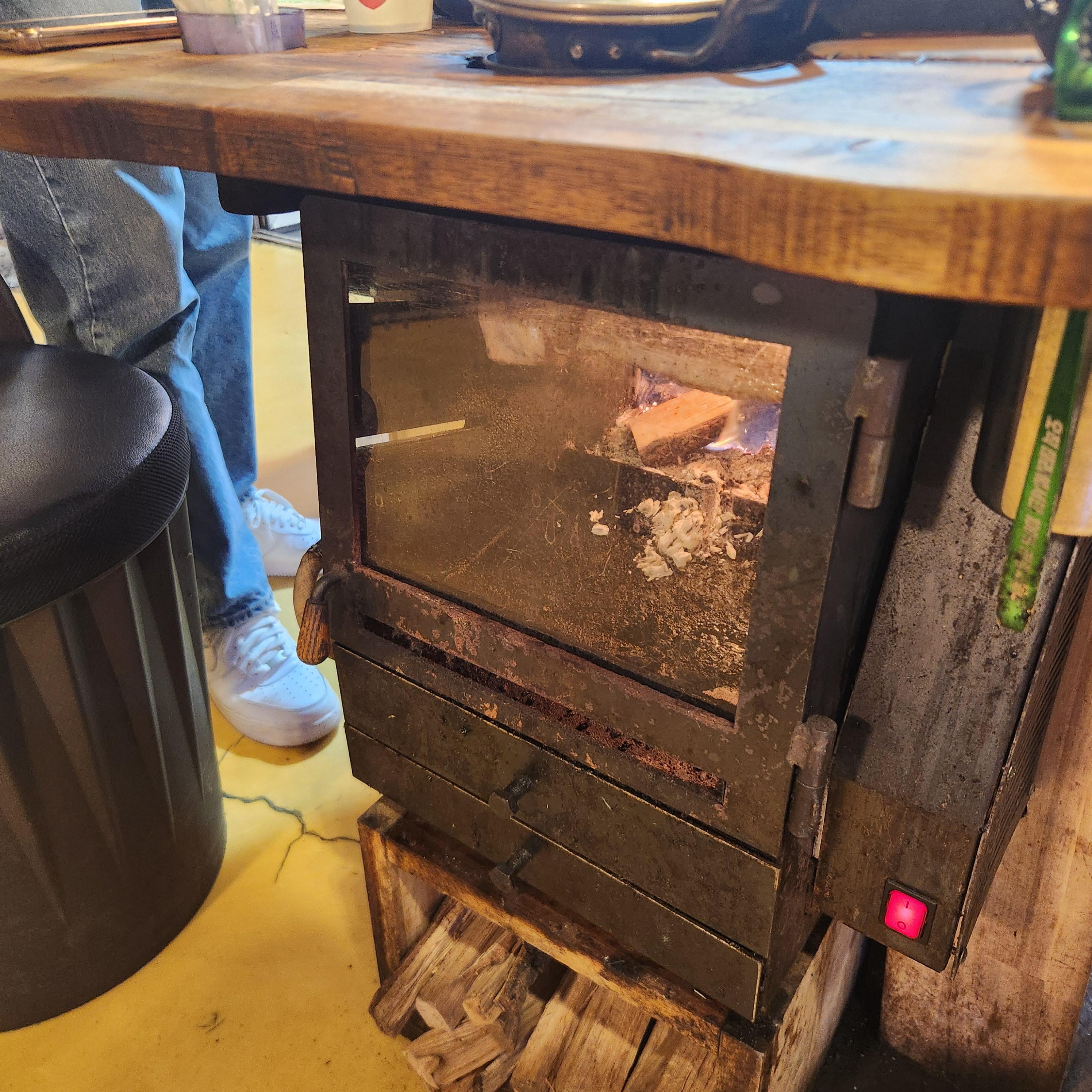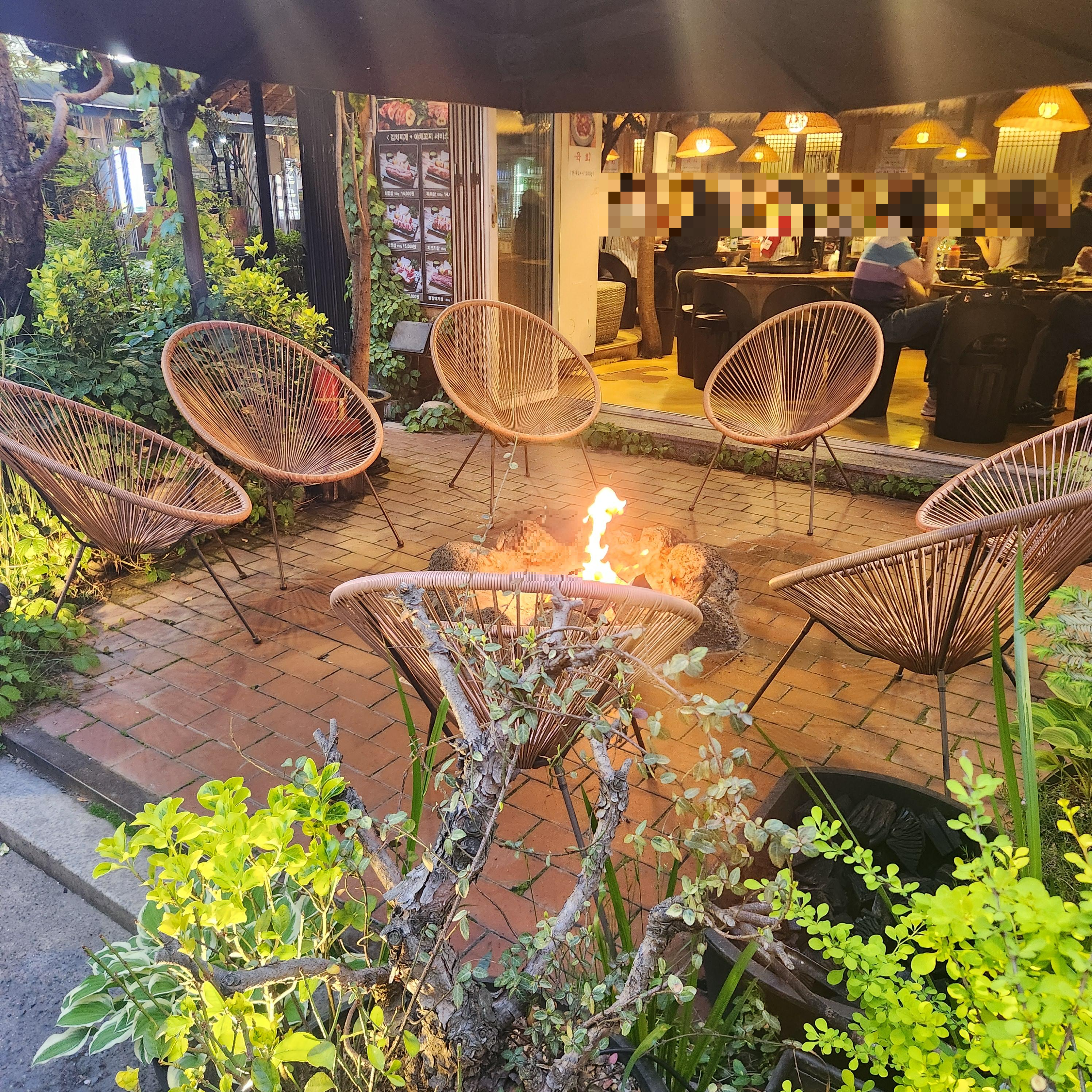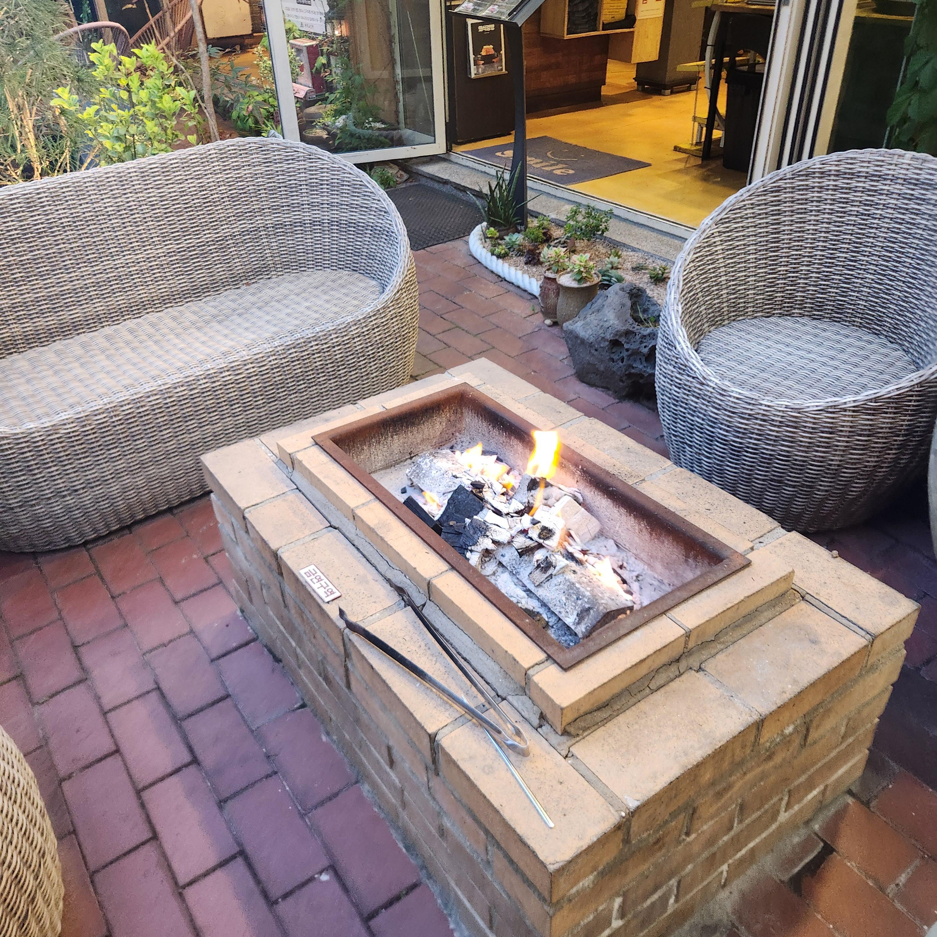 장작불을 피워놓고 주위에 느낌 있는 의자가 있는 게 웨이팅 할 때도 분위기 있어 센스가 보입니다!