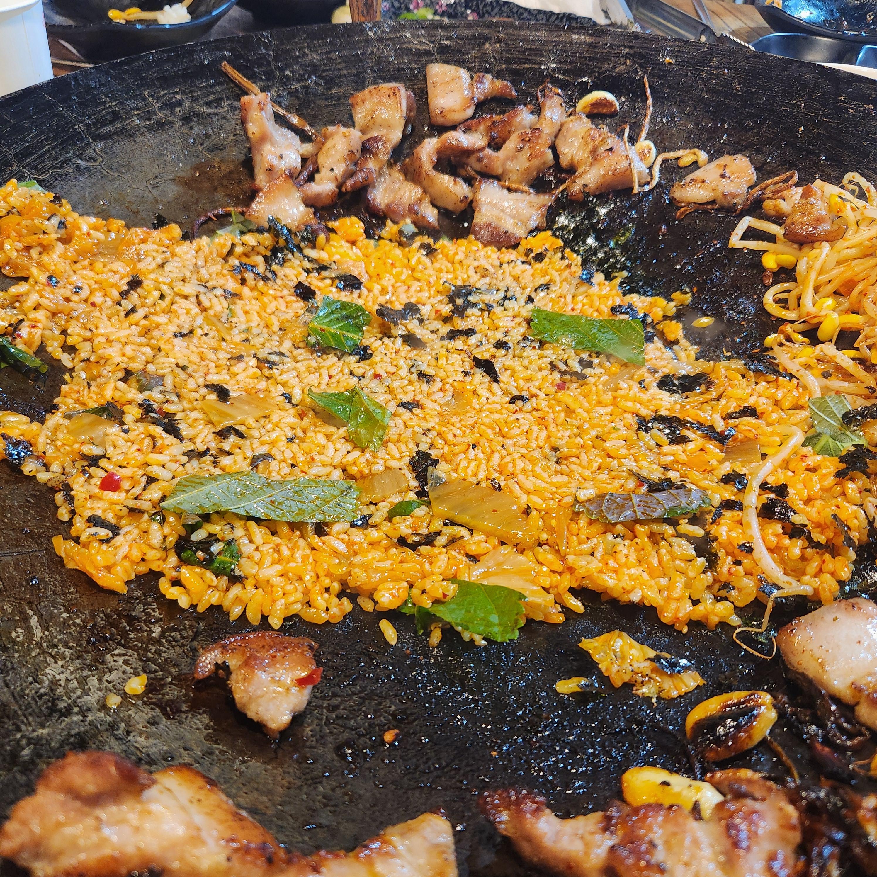주방에서 볶아진 상태로 와서 판에 펼쳐주십니다. 별다른 쇼맨십은 없었고요 비주얼은 조금 아쉬웠어요 ㅠ