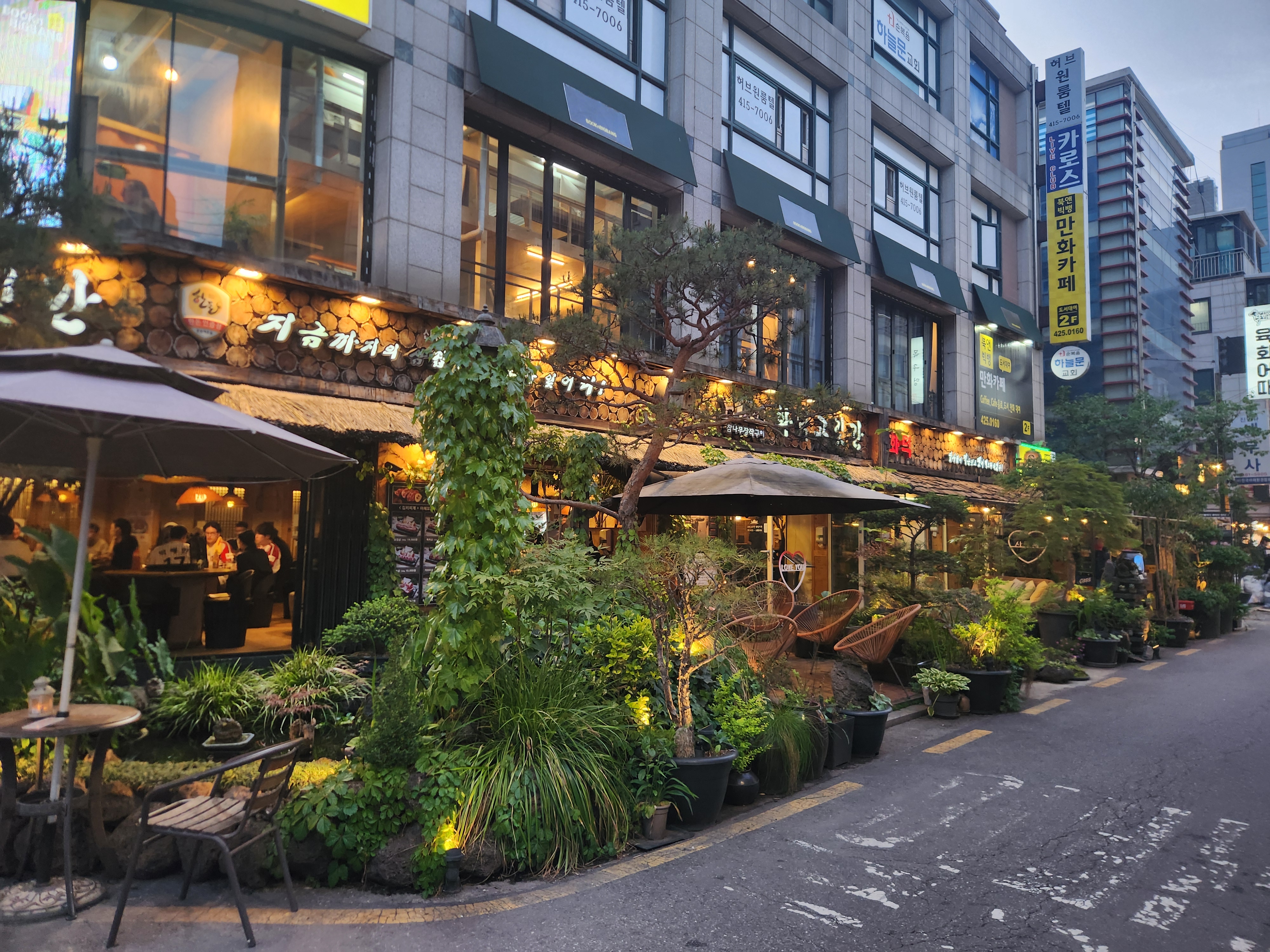 해가 저무는 시점에 장작을 이미지화한 간판에 조명이 들어온 게 굉장히 운치 있으며 고급져 보입니다.