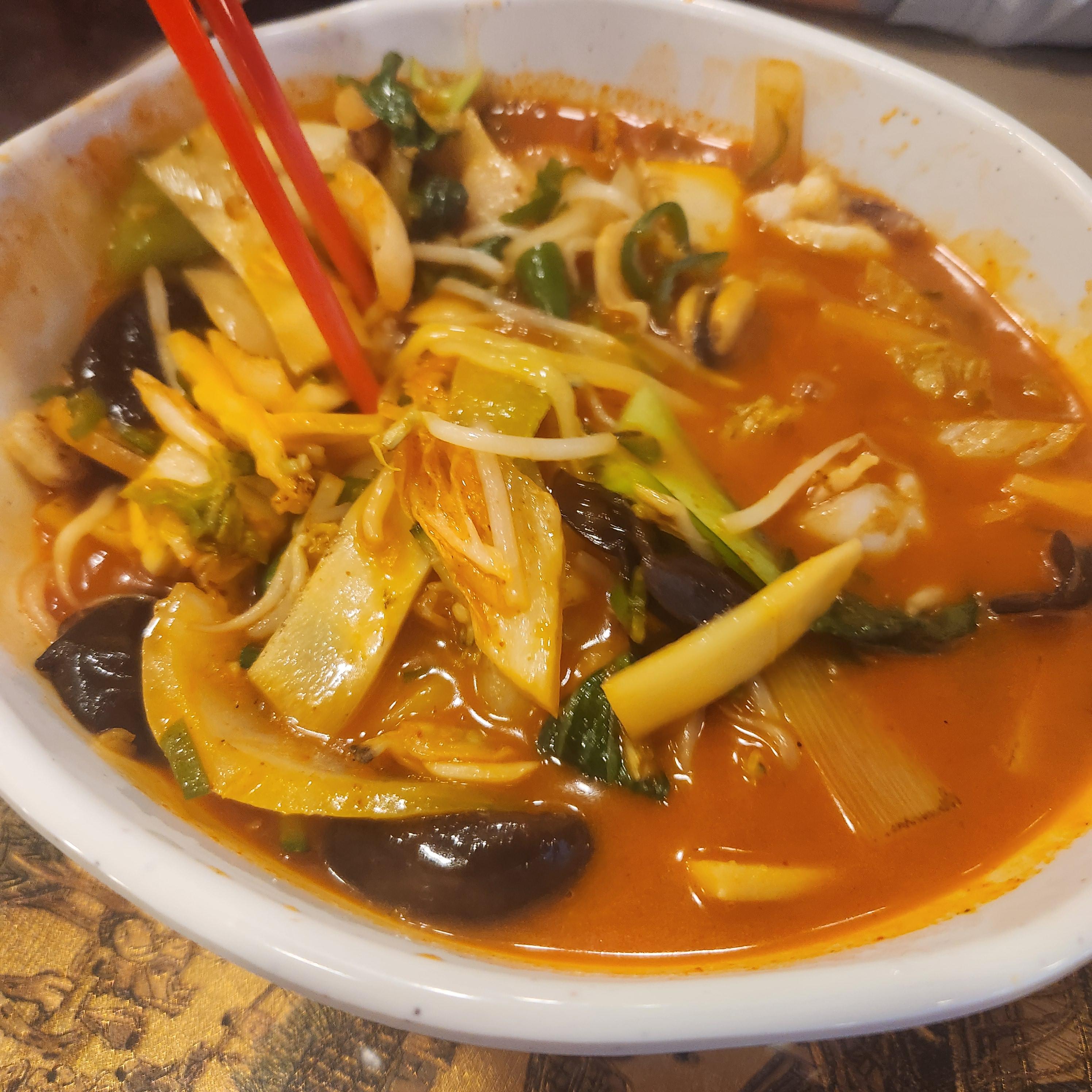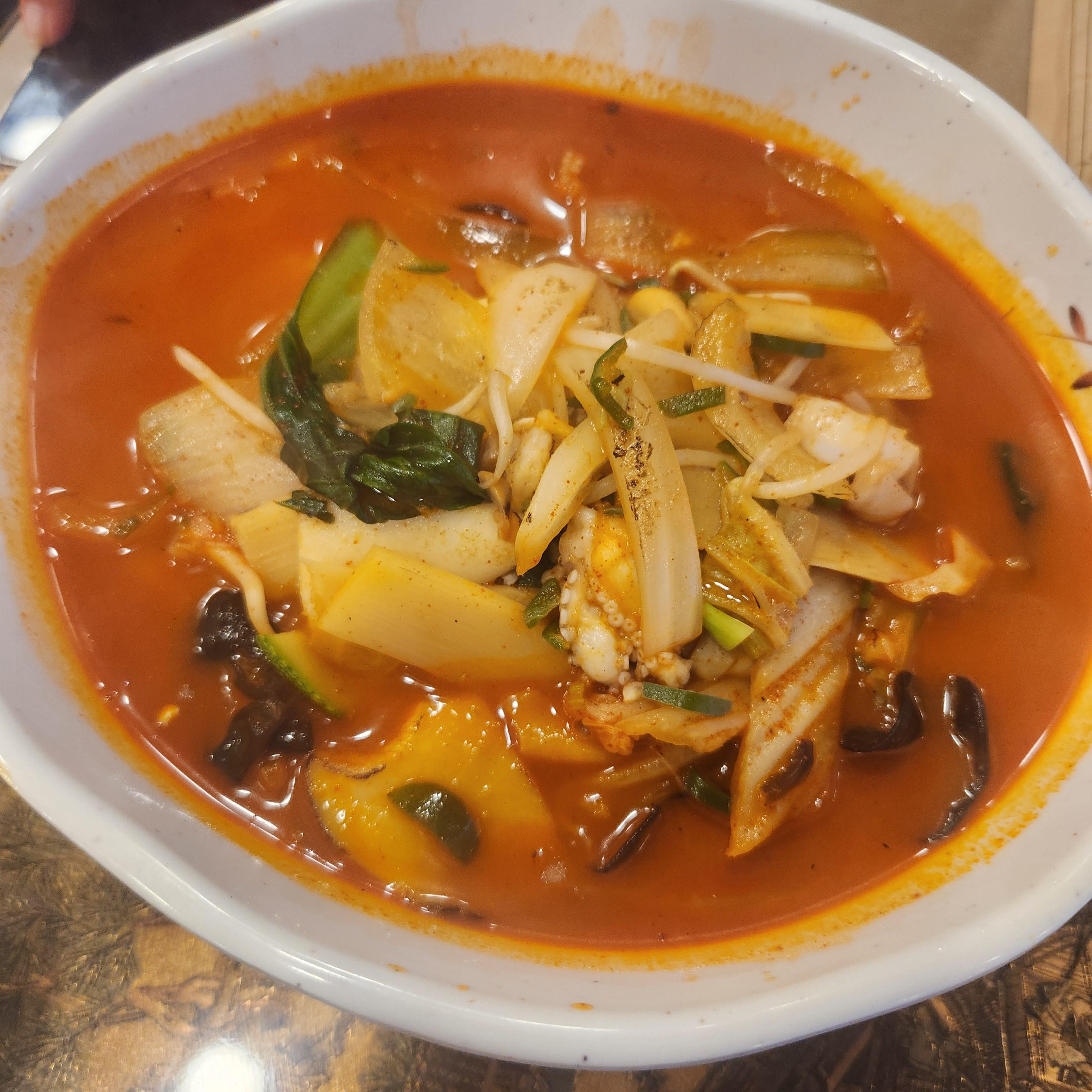 삼선짬뽕은 일단 재료들의 신선함을 충분히 느낄 수 있었어요. 청경채, 오징어, 각 종 채소들 식감이 살아있으며 국물 또한 진한 짬뽕 국물 느낌으로 맵지도 짜지도 않은 게 모든 선을 잘 지킨? 느낌의 짬뽕입니다. 면 역시 짜장면과 같은 면을 사용하시는 거 같아서 시간이 지나도 잘 불지 않으며 탱탱한 면발을 계속 즐길 수 있었어요.