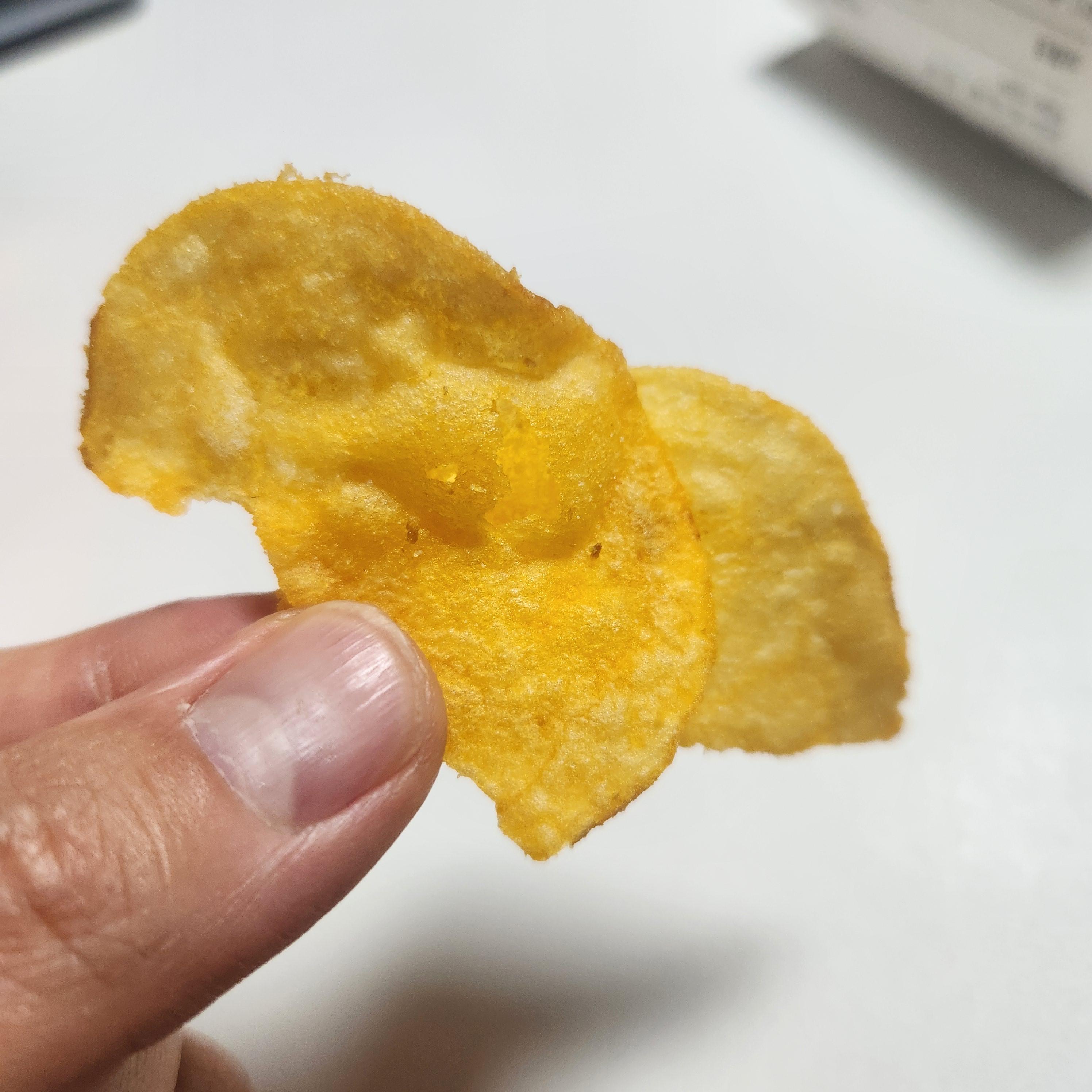 포카칩 감자칩에 치즈 시즈닝이 정말 듬뿍 발라져 있습니다. 하얀 부분이 안보일정도로 치즈 시즈닝이 깊게 스며들어 있네요. 식감은 잘 부스러질 정도로 정말 바삭하네요. 맛은 단짠의 조화가 잘 이루어진 게 그냥 바로 맥주를 부르는 맛입니다. 생각보다 짠 편이지만 치즈의 풍미가 그 부분을 커버해 주어 느끼함과 물림 없이 계속 들어가는 맛입니다.