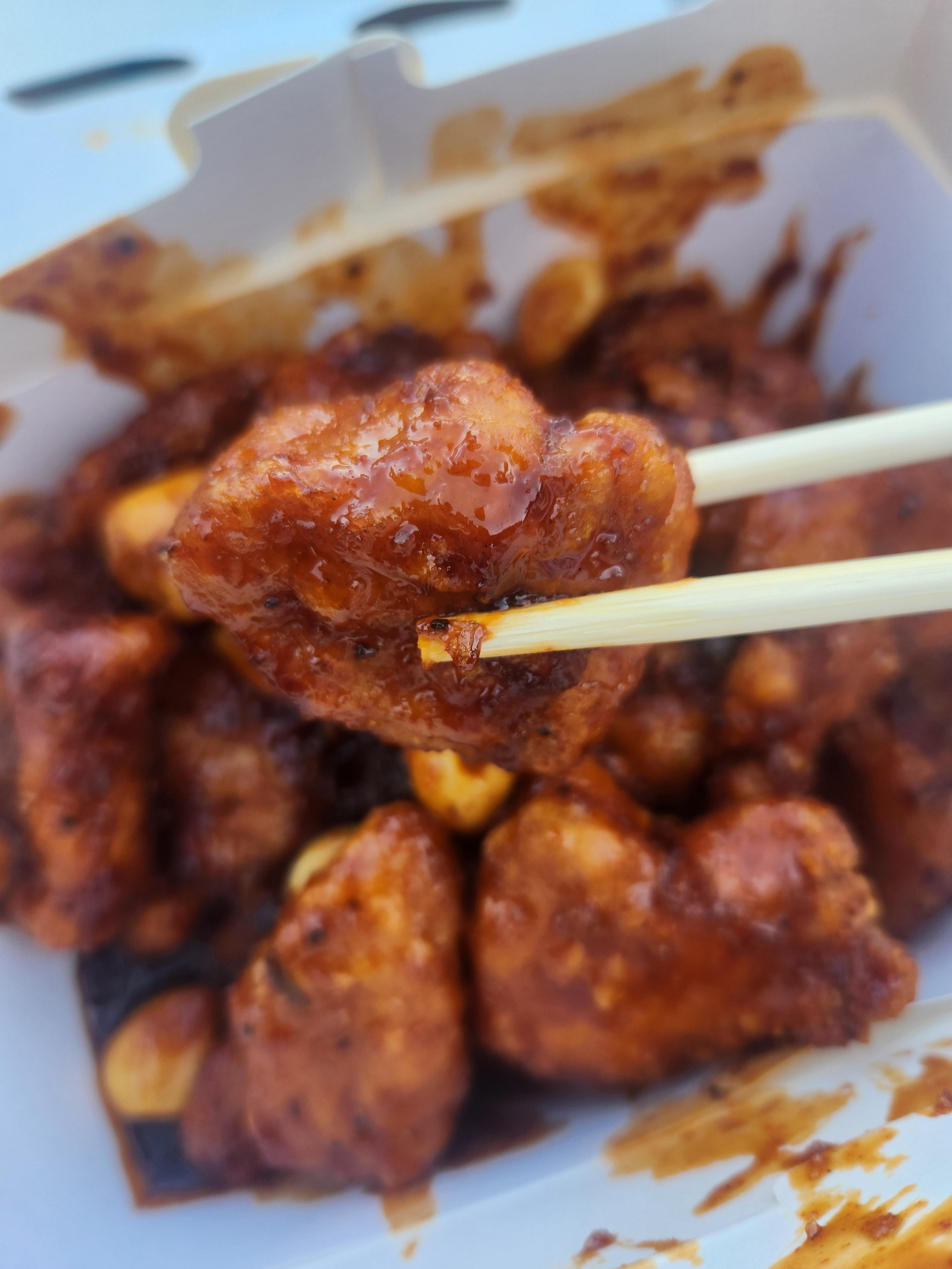 맛은 약간 음.. 녹진한 깐풍기 소스 맛? 살짝 비슷한 거 같으나 어떻게 보면 다른 거 같네요.. 비슷한 맛이 떠오르는 음식이 딱히 없었어요. 독보적인 bhc만의 양념소스 같아요. 매콤함이 살짝 뒤늦게 올라오는 게 은근 맵긴 합니다. 그러나 매운 거 잘 못드시는 분들도 어느 정도 드실 수 있을만한 맵기 같아요.
