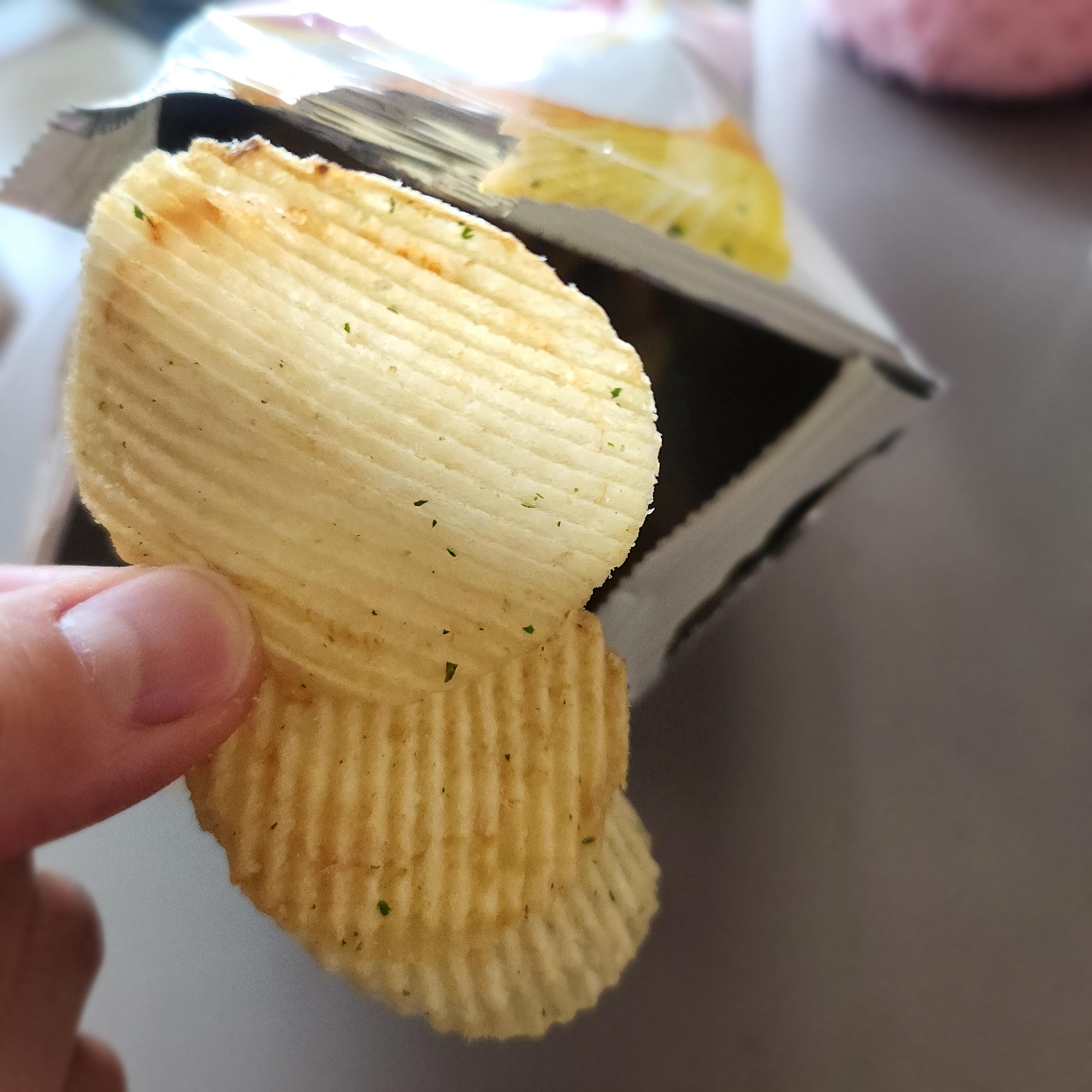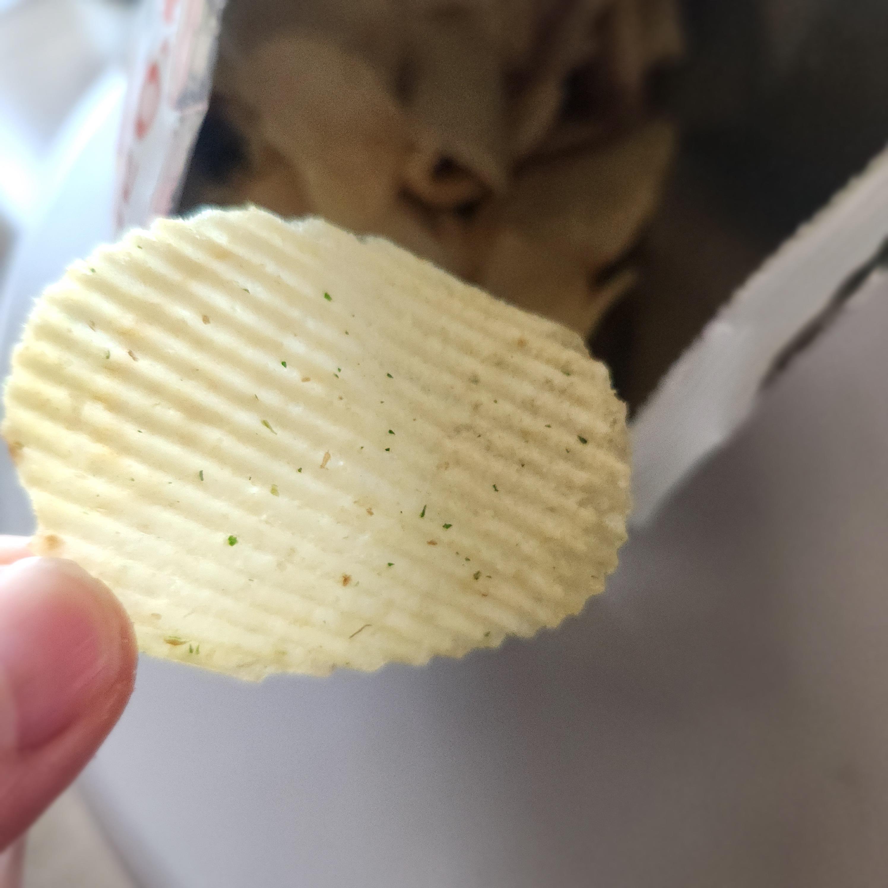 스윙칩 특유의 두툼한 감자칩 식감이 살아있습니다. 곳곳에 파슬리같은 게
