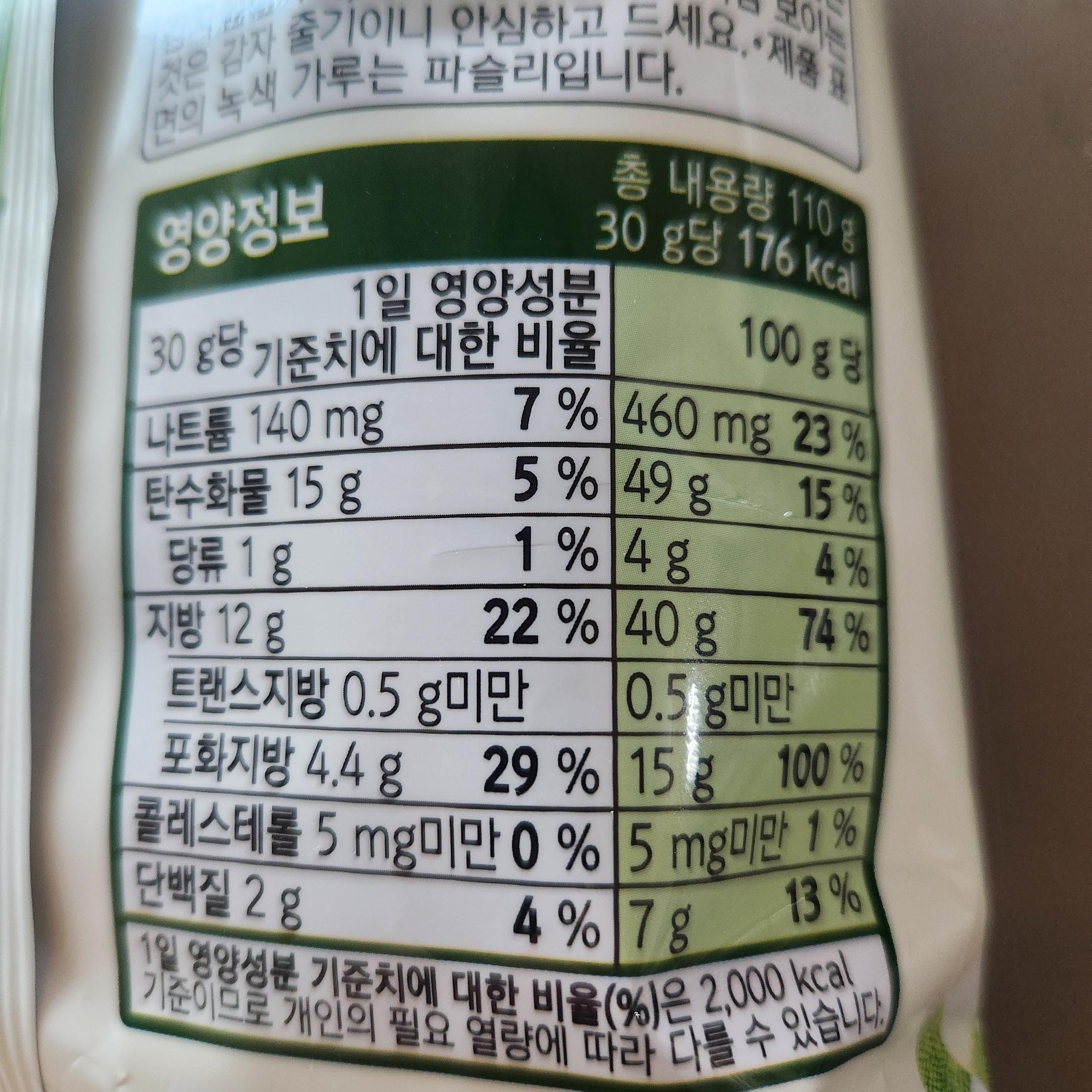 칼로리는 30g 당 176kcal로 여타 다른 감자칩과 비슷한 수준이네요.