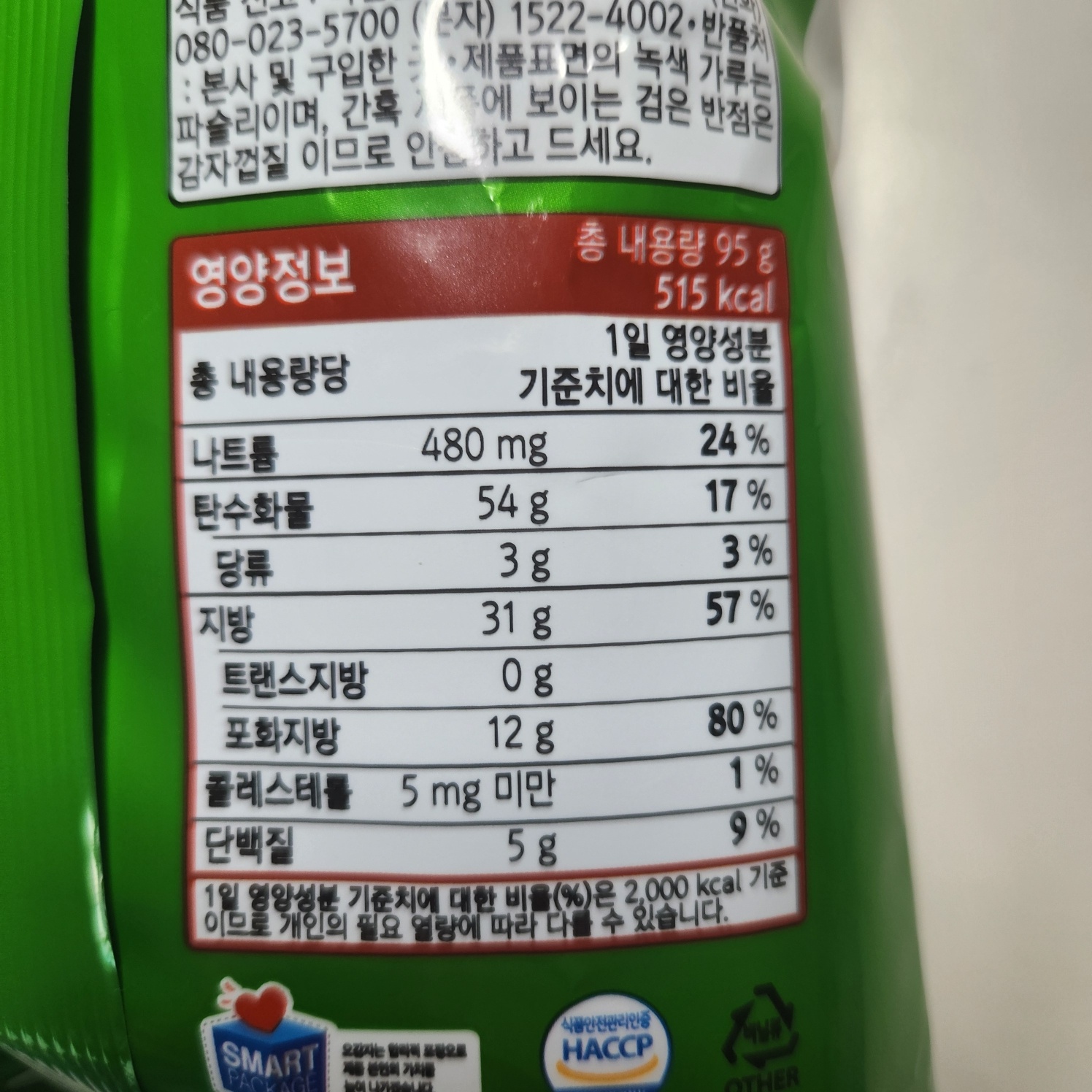 오감자와 양파의 환상의 조합으로 담백 고소한 맛이 특징이라고 합니다. 기본 사이즈보다 큰 용량이다보니 칼로리와 가격이 높긴 합니다. 95g은 2번 나눠서 먹어야할 거 같네요!