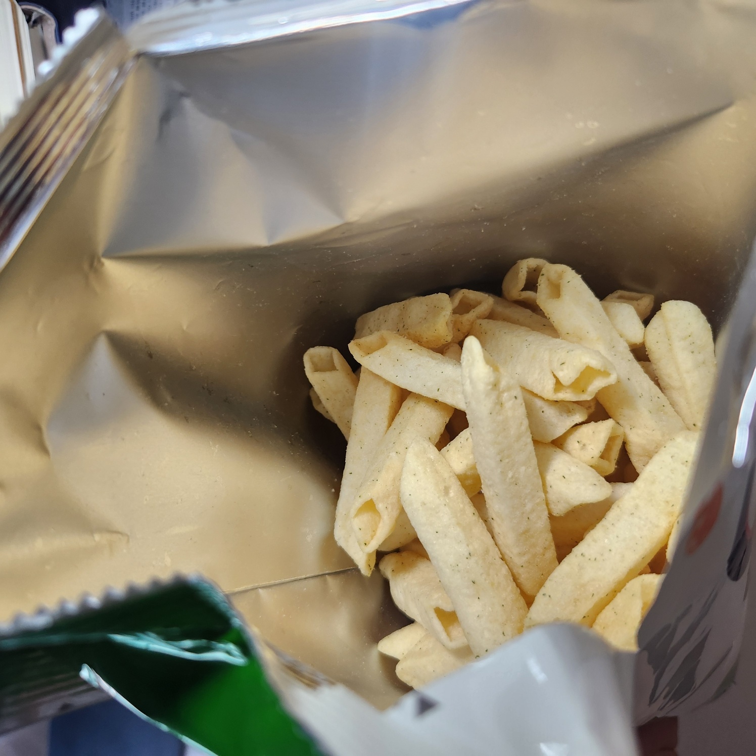 과자 곳곳에 어니언 시즈닝이 골고루 묻혀있습니다. 정말 말 그대로 자꾸 손이 가는 담백 고소 짭짤한 맛이네요. 왜 진작 어니언맛을 내지 않으셨는지 의문스러울 정도로 조화가 맞네요. 오감자 베이스 과자에 어떤 맛을 콜라보해도 맛있겠지만 어니언은 특히 매력있으면서 대중적인 맛으로 호불호 없이 남녀노소 누구나 좋아하실 거 같네요!