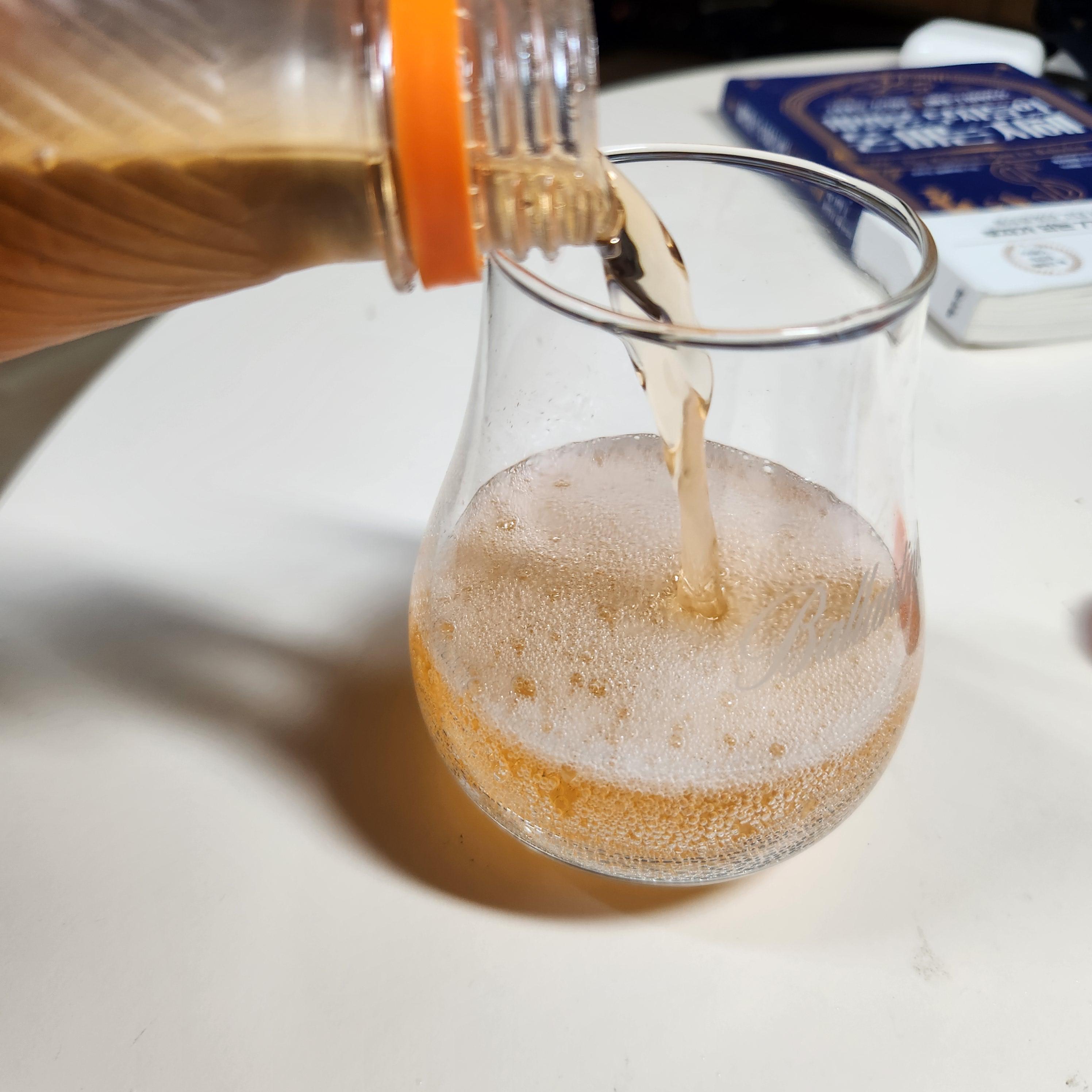 컵에 따르자마자 느껴지는 탄산감으로 흡사 맥주와 같은 비주얼이네요.
