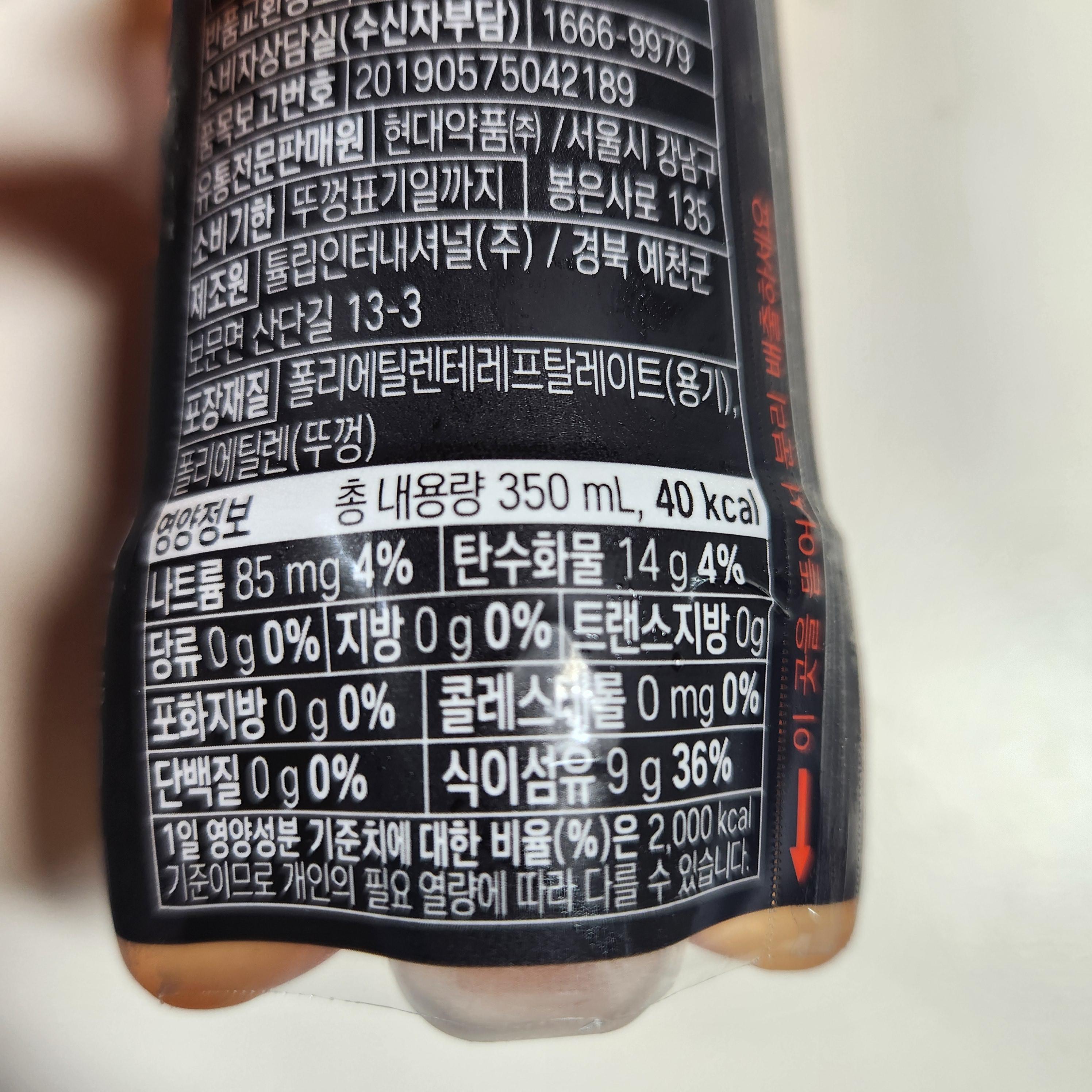 칼로리는 완전한 제로가 아닌 40kcal이네요. 이 정도는 뭐 제로라 칭해도 상관없을 거 같네요~