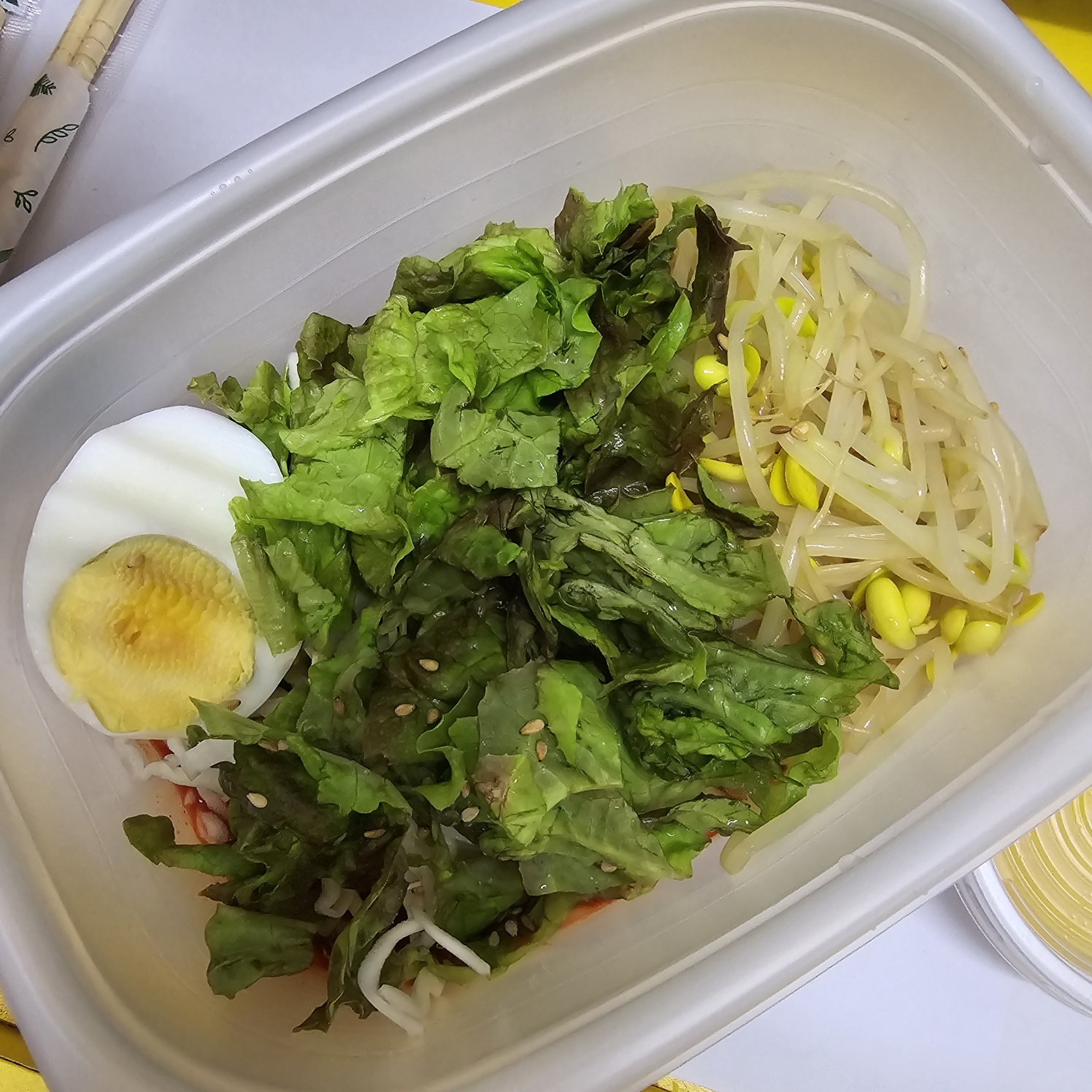 토핑은 별다를 거 없이 상추, 양배추, 콩나물, 계란 반 쪽 올라갔으며,