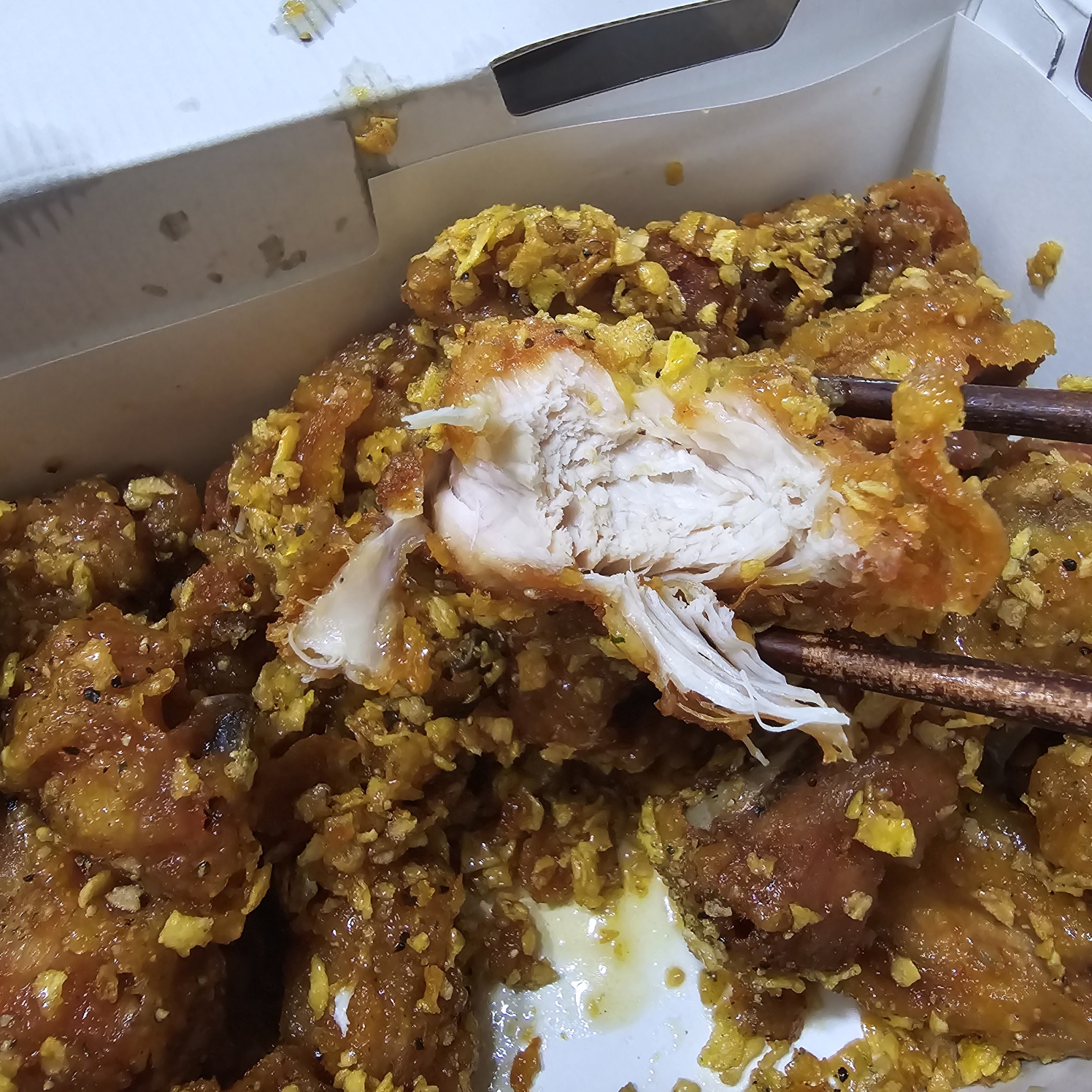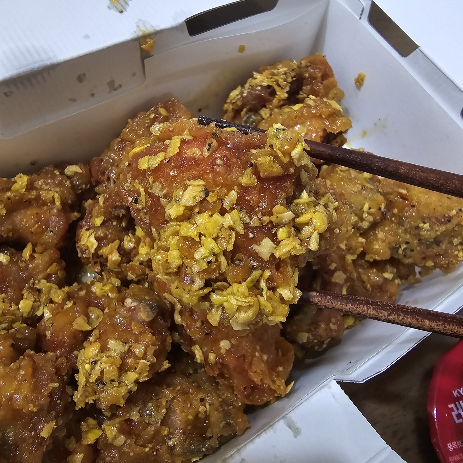 좋은 닭을 쓰는 게 느껴질 정도로 잡내도 1도 안나며, 역시 교촌이구나 하는 생각이 들면서 먹었습니다.