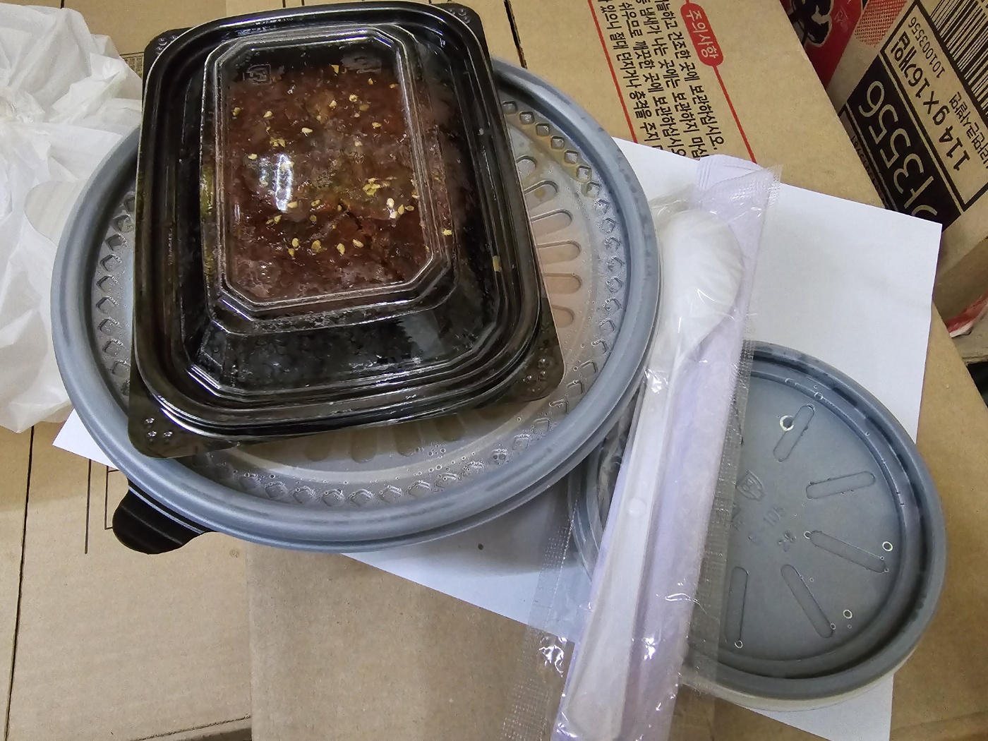 밥 용기에 떡갈비는 별도로, 일회용 수저와 미역국이 나옵니다!