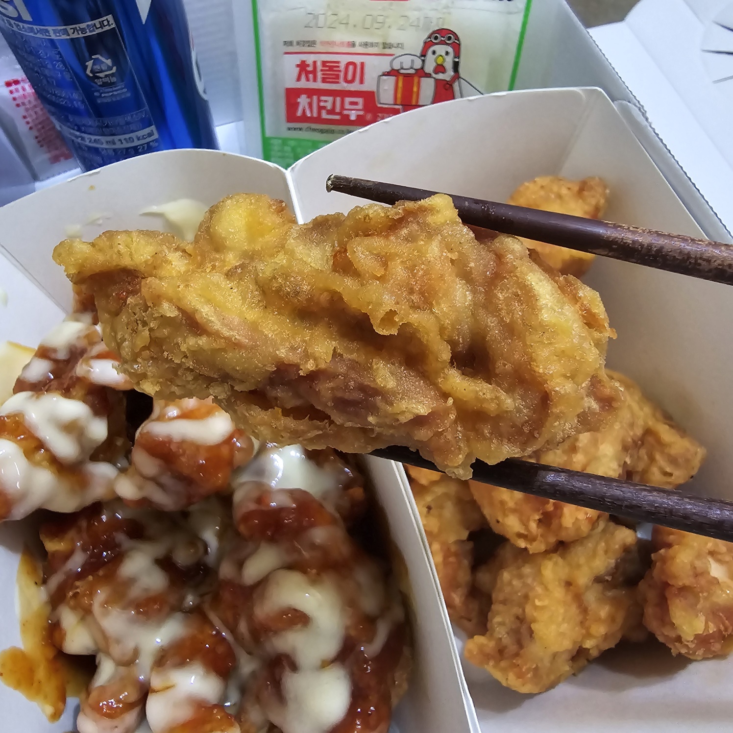후라이드 상태 그대로라 반은 촉촉 반은 바삭하여 조화가 굉장합니다!