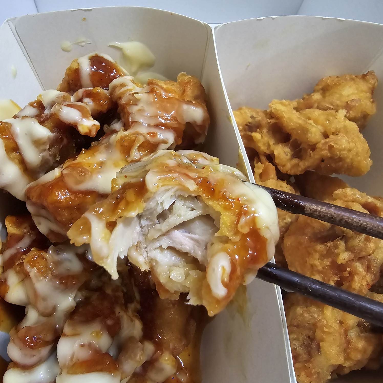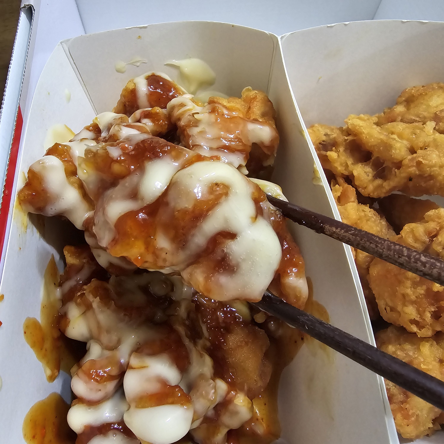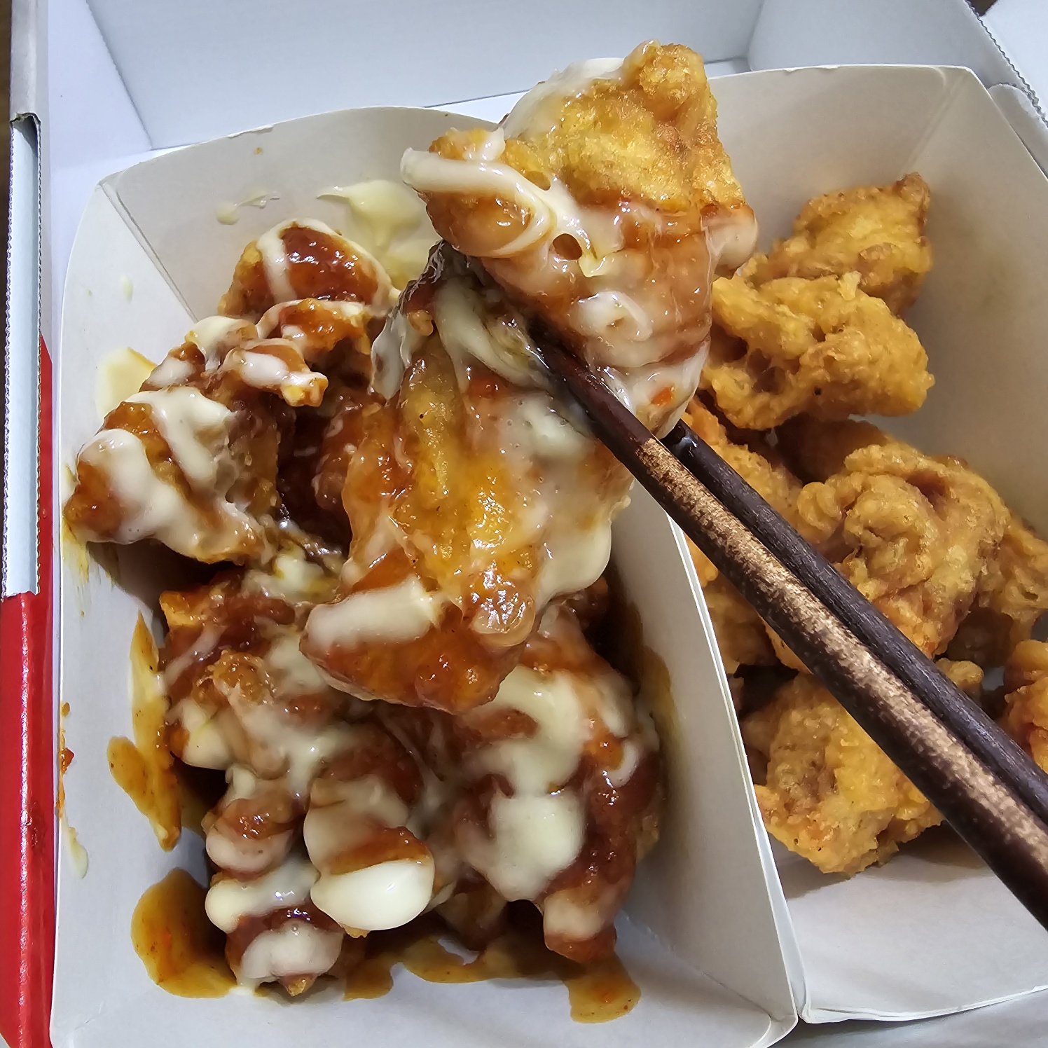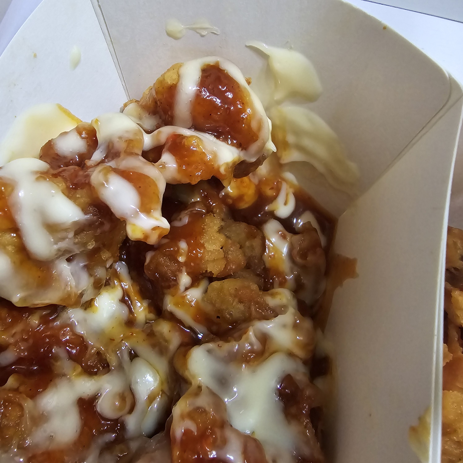 기존 양념 베이스에 화이트소스가 야무지게 올라가 있습니다.